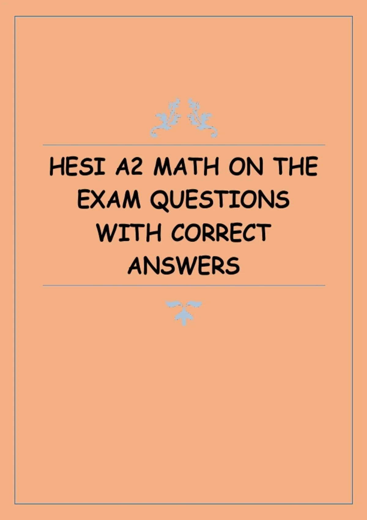 This document contains verified HESI A2 math exam questions along with correct answers. It covers all essential math topics tested on the exam, including basic arithmetic, fractions, decimals, percentages, ratios and proportions, algebra, and word problems, making it a targeted resource for math preparation.