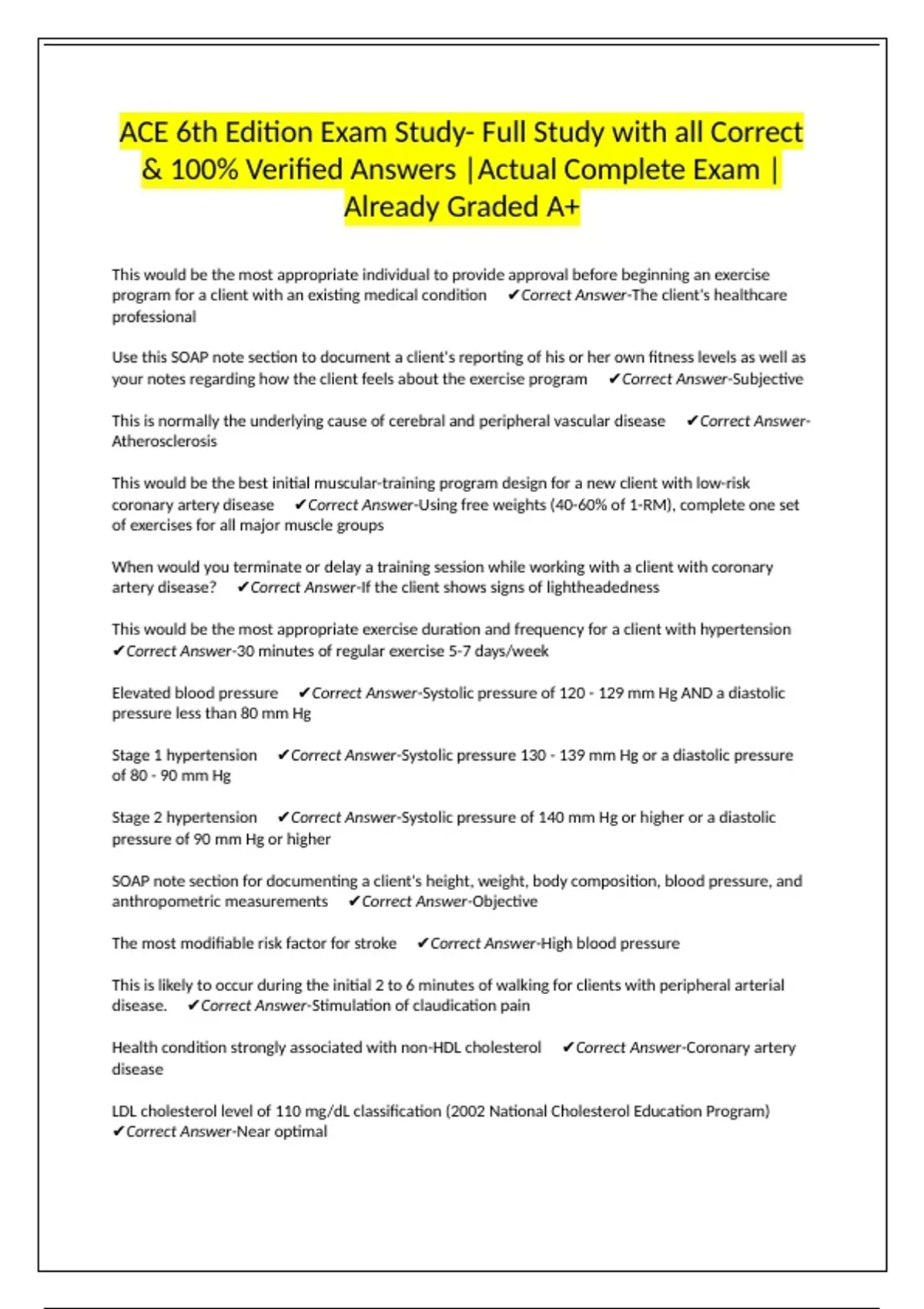 ACE 6th Edition Exam Study- Full Study with all Correct
