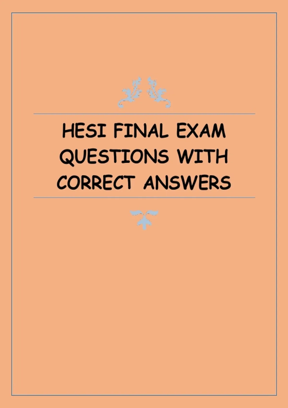 , HESI FINAL EXAM QUESTIONS WITH CORRECT ANSWERS