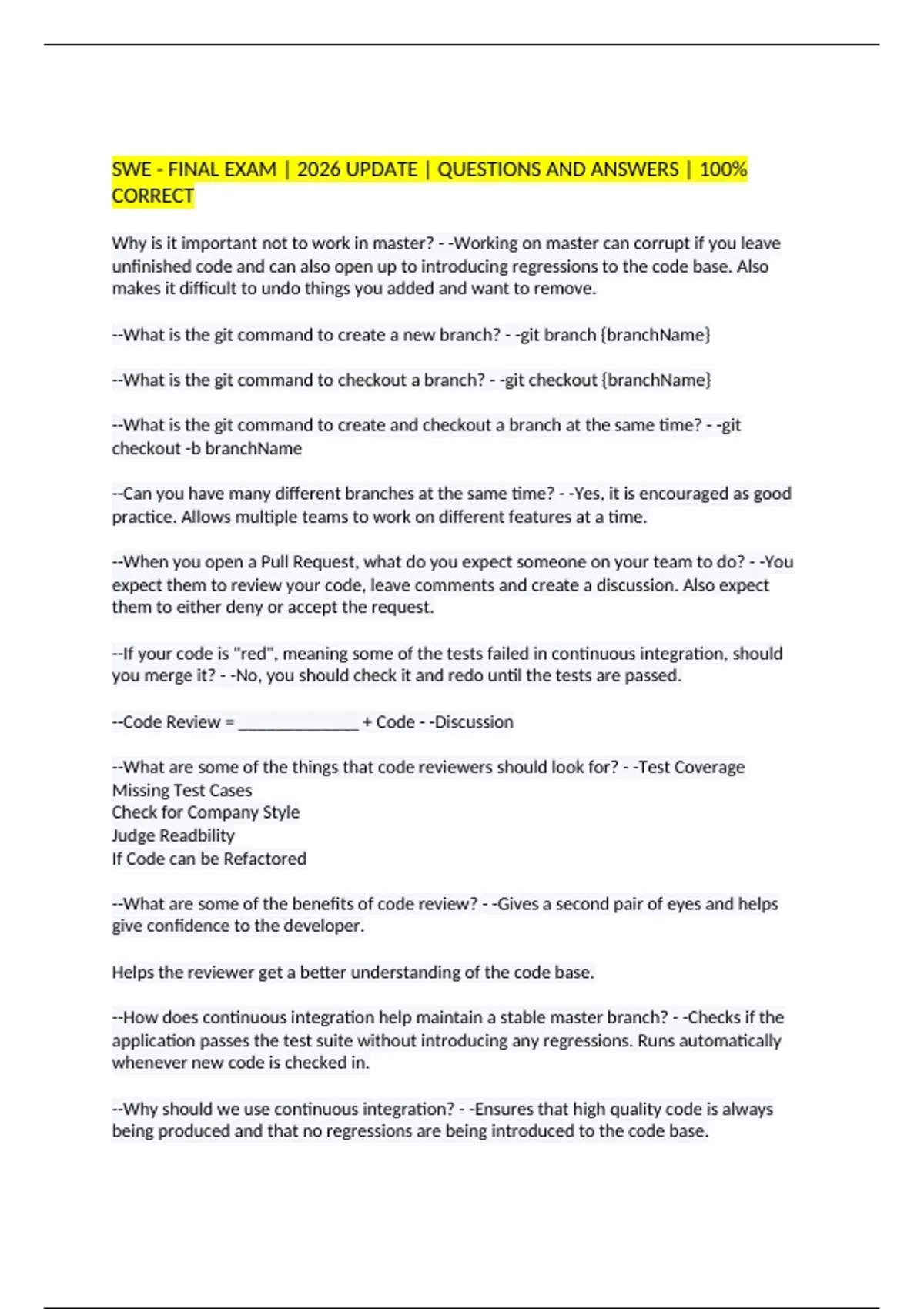 SWE - FINAL EXAM | 2026 UPDATE | QUESTIONS AND ANSWERS | 100%