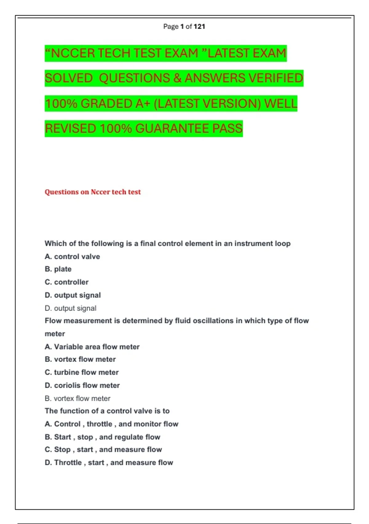 “NCCER TECH TEST EXAM ”LATEST EXAM