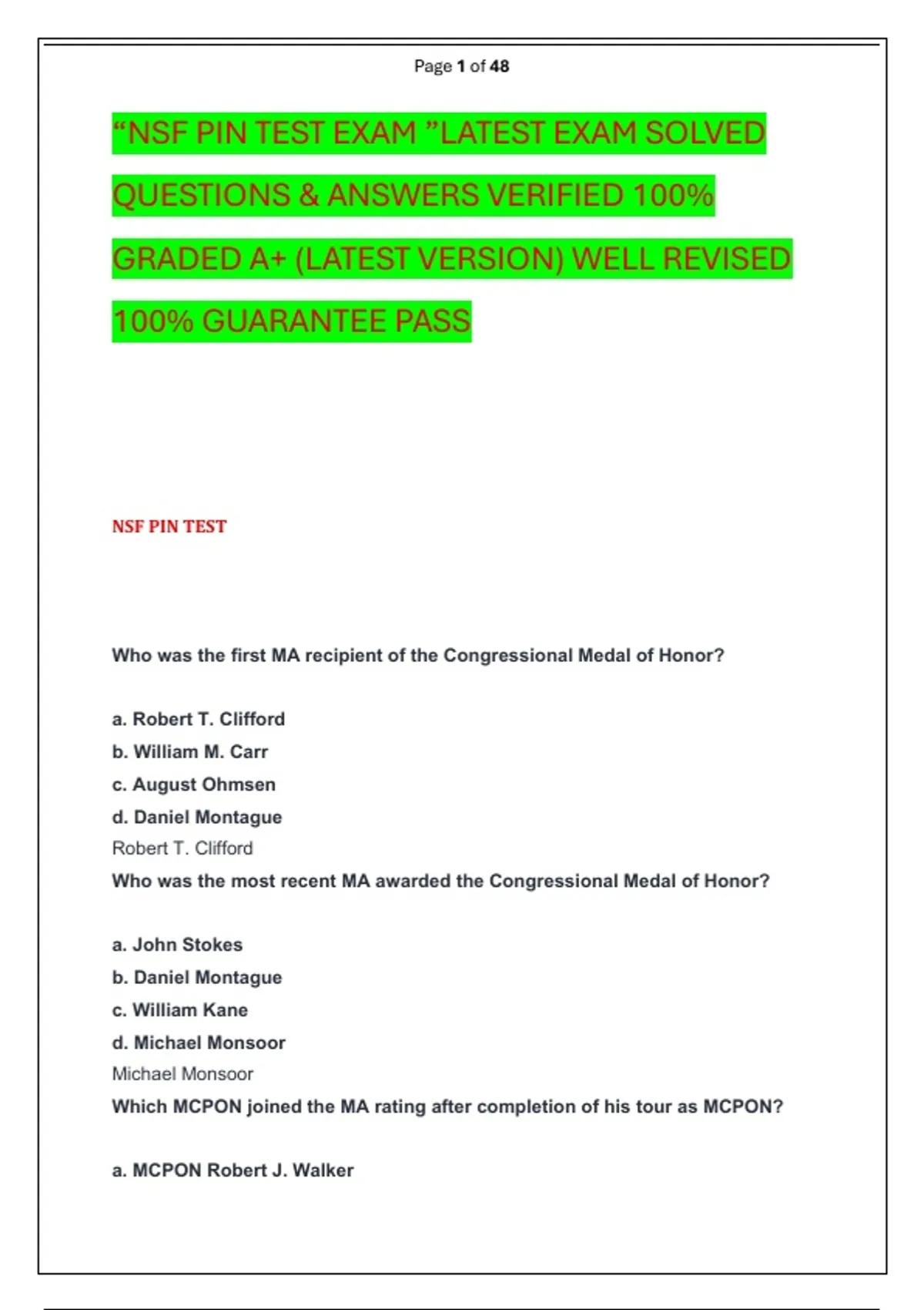 “NSF PIN TEST EXAM ”LATEST EXAM SOLVED