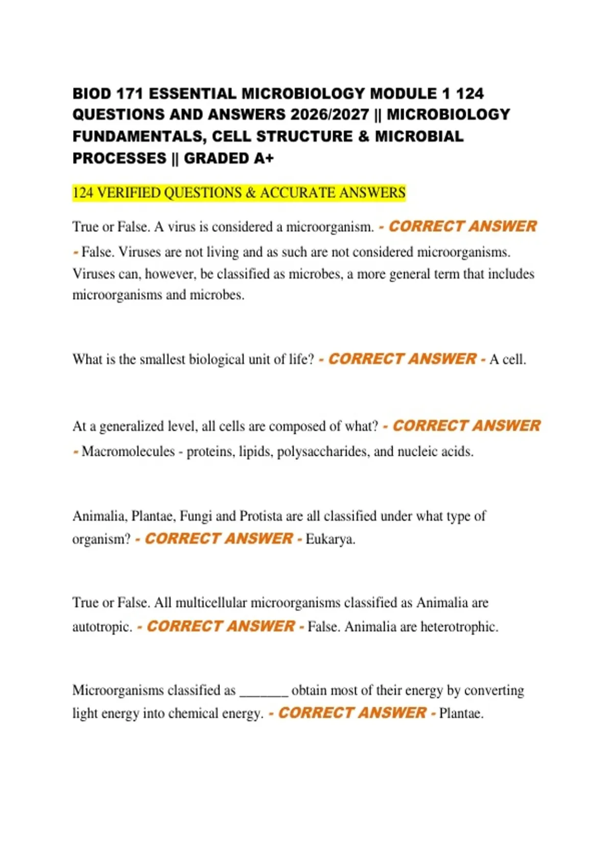QUESTIONS AND ANSWERS 2026/2027 || MICROBIOLOGY