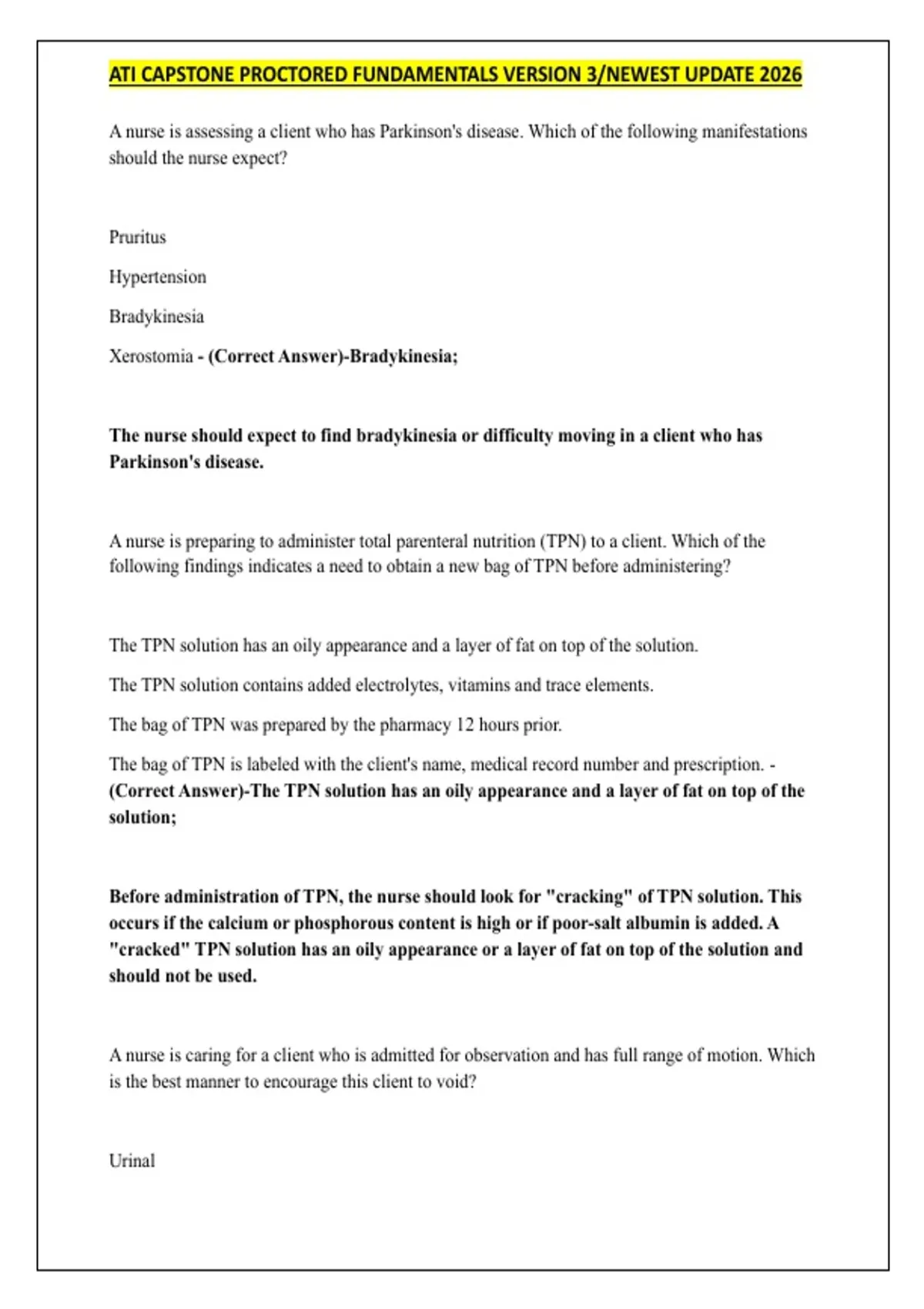 ATI CAPSTONE PROCTORED FUNDAMENTALS VERSION 3/NEWEST UPDATE 2026