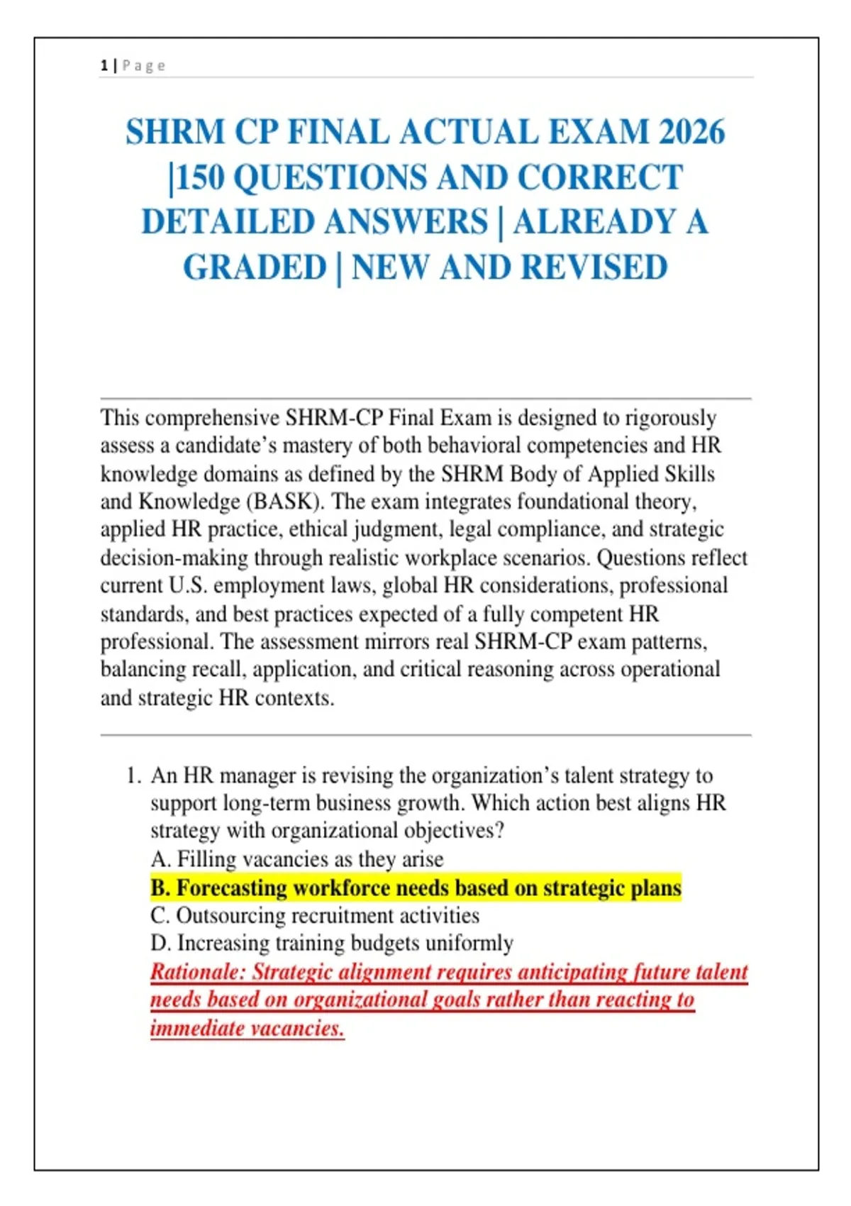 This comprehensive SHRM-CP Final Exam is designed to rigorously