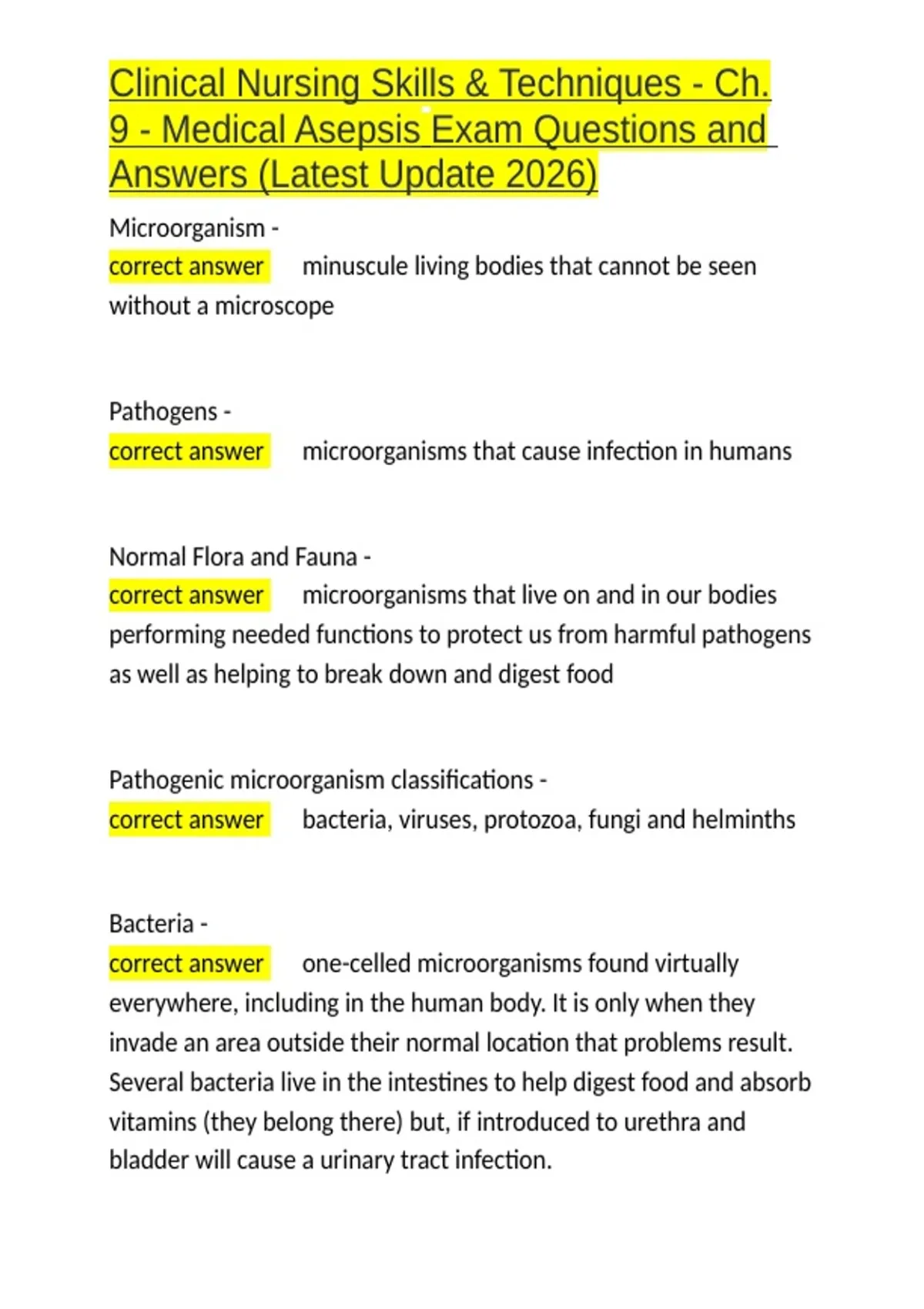 Clinical Nursing Skills & Techniques - Ch. 9 - Medical Asepsis Exam Questions and Answers (Latest Update 2026).docx