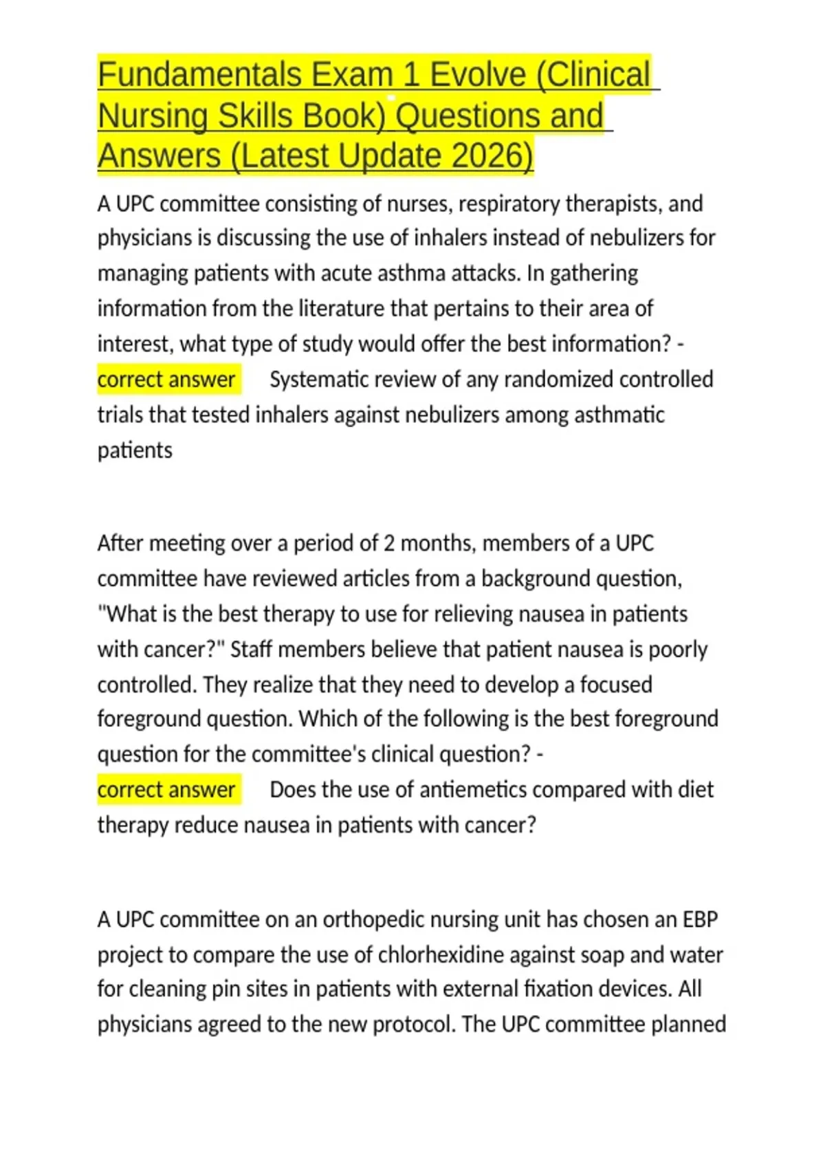 Fundamentals Exam 1 Evolve (Clinical Nursing Skills Book) Questions and Answers (Latest Update 2026).docx