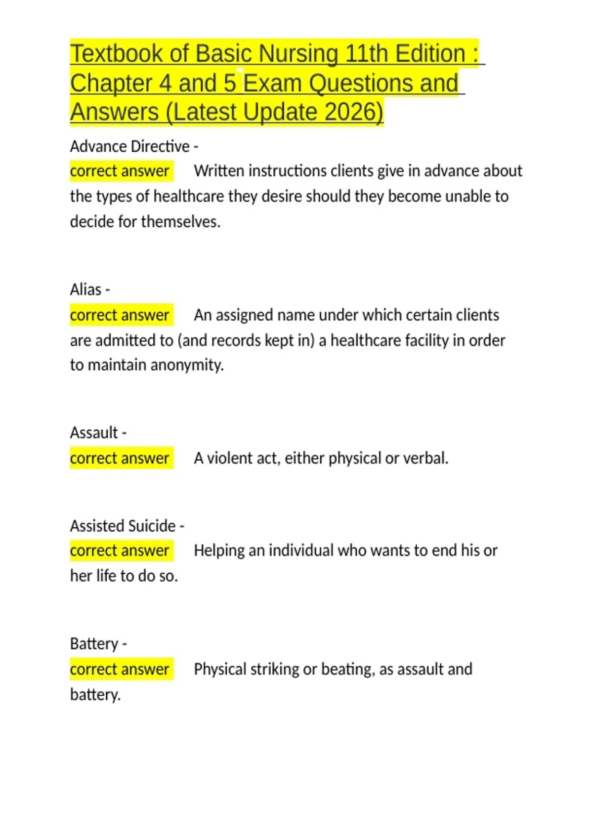 Textbook of Basic Nursing 11th Edition Chapter 4 and 5 Exam Questions and Answers (Latest Update 2026).docx