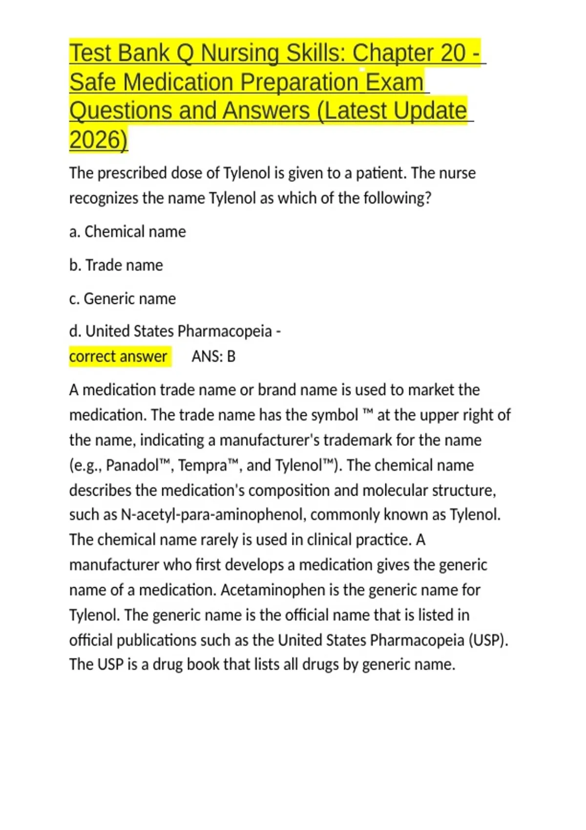 (e.g., Panadol™, Tempra™, and Tylenol™). The chemical name