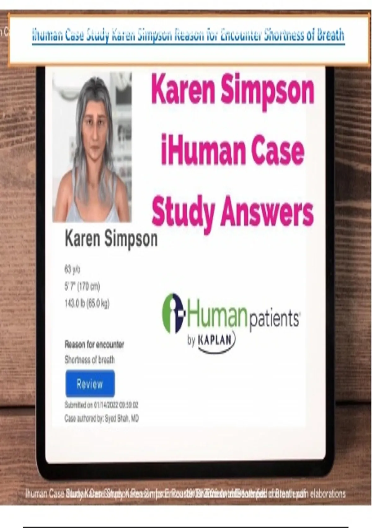 Review iHuman Case Study Karen Simpson’s reason for encounter with shortness of breath using this 2025/2026 guide with solution, designed to improve clinical understanding, diagnostic skills, and exam performance.