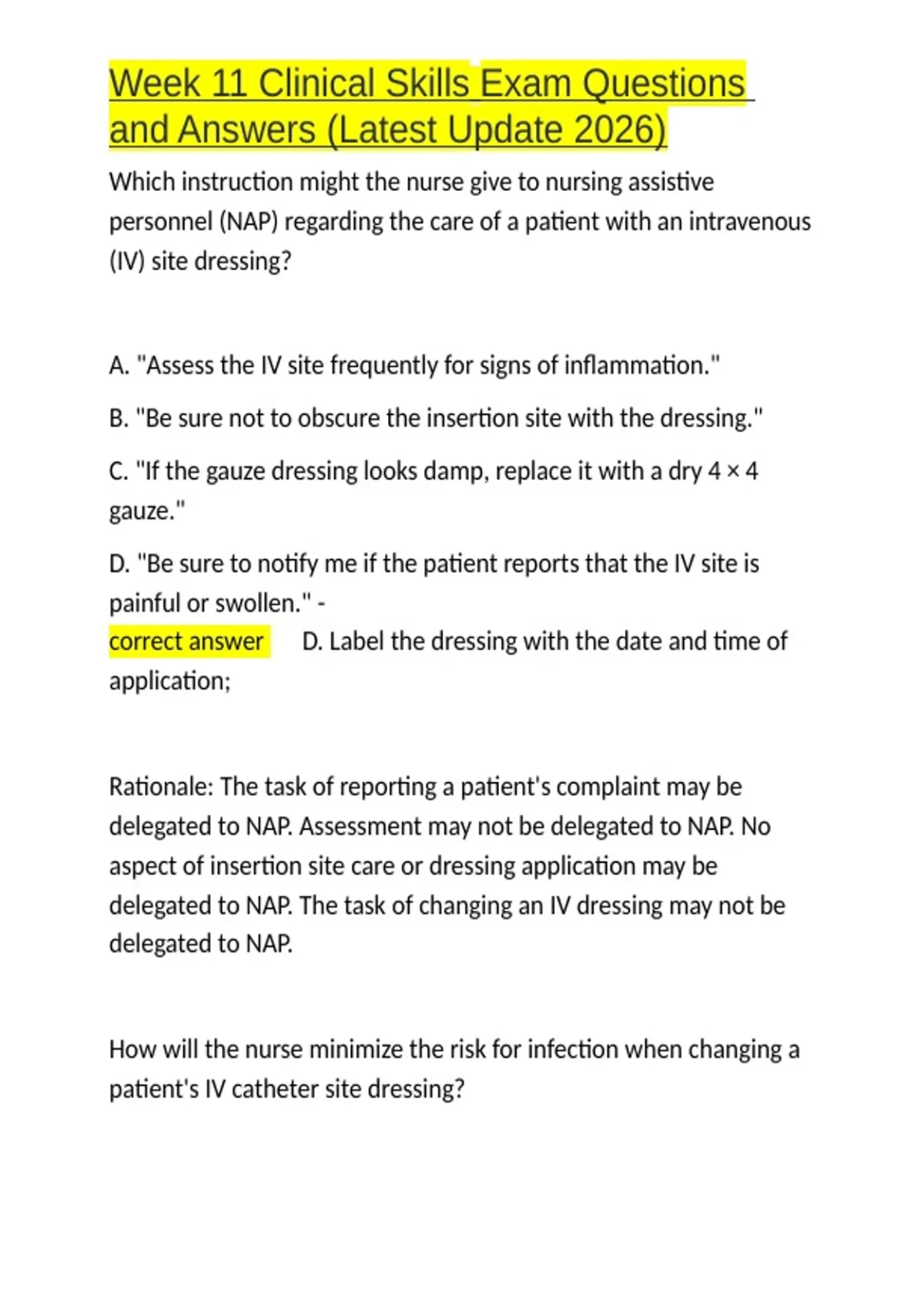 , Week 11 Clinical Skills Exam Questions