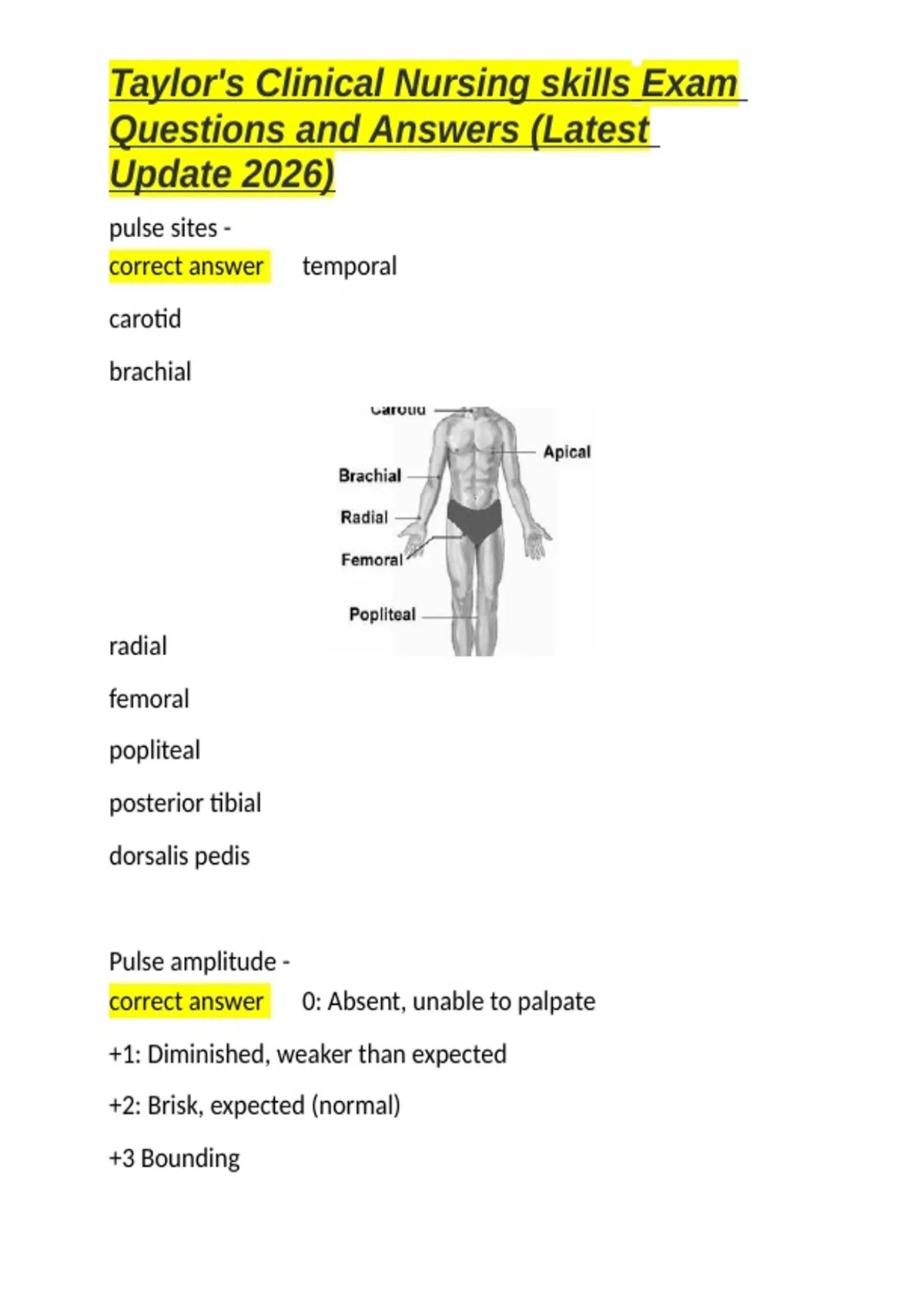 Taylor-s Clinical Nursing skills Exam Questions and Answers (Latest Update 2026).docx
