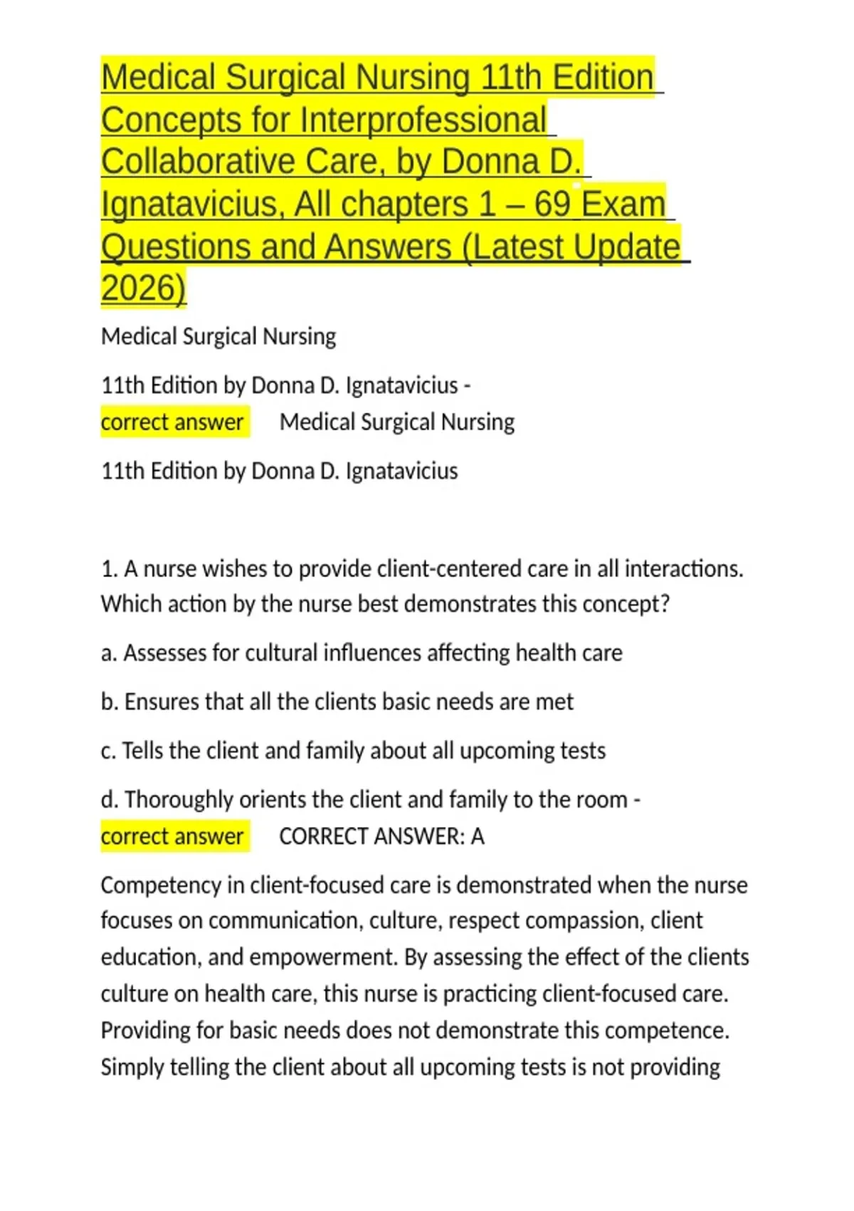 correct answer ✅Medical Surgical Nursing