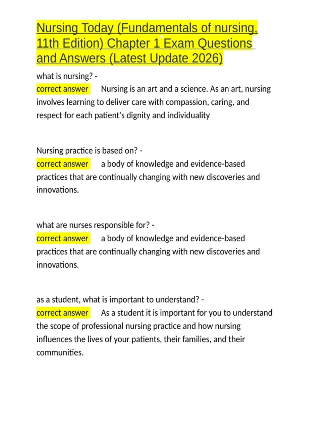 correct answer ✅Nursing is an art and a science. As an art, nursing