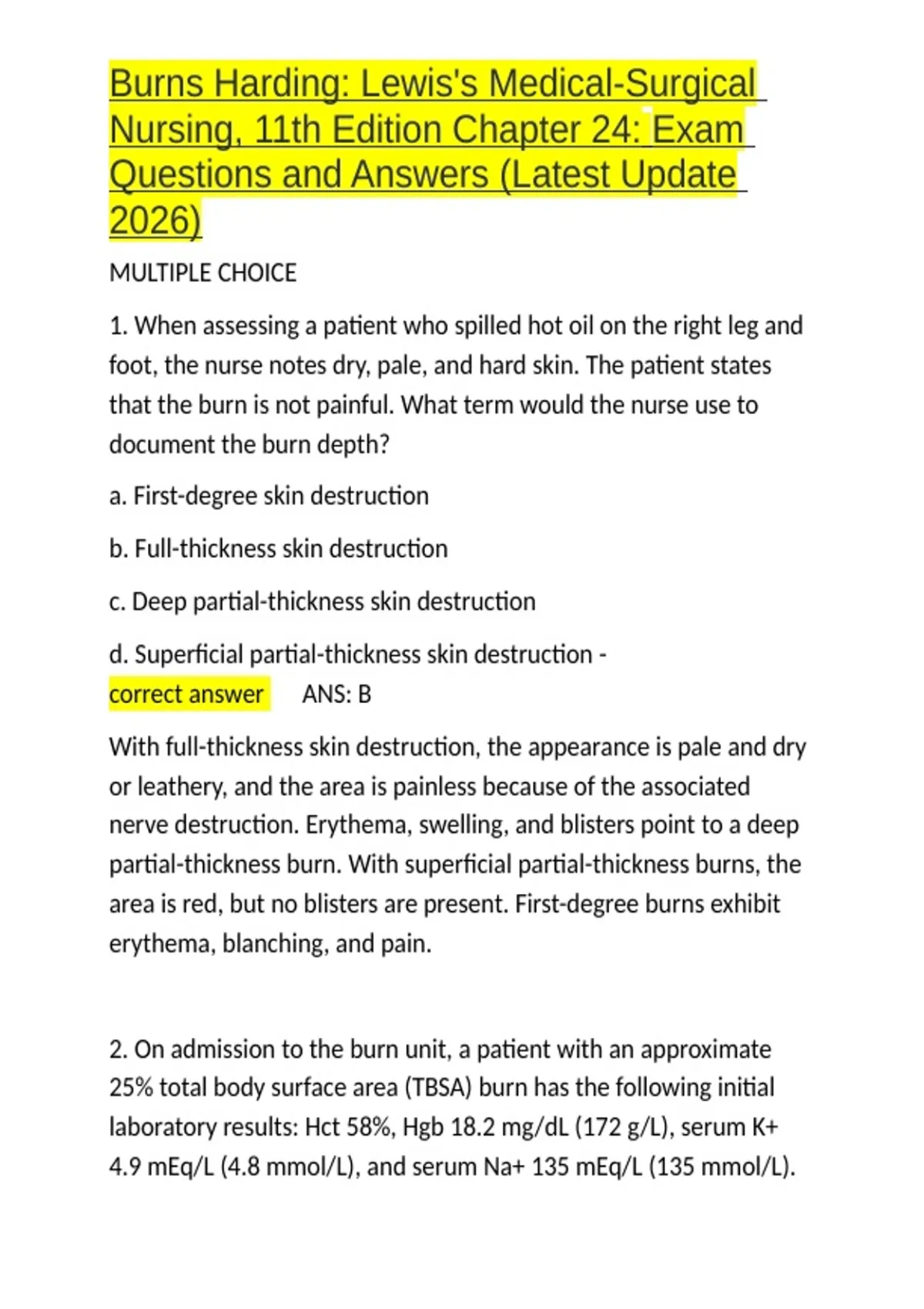 2. On admission to the burn unit, a patient with an approximate