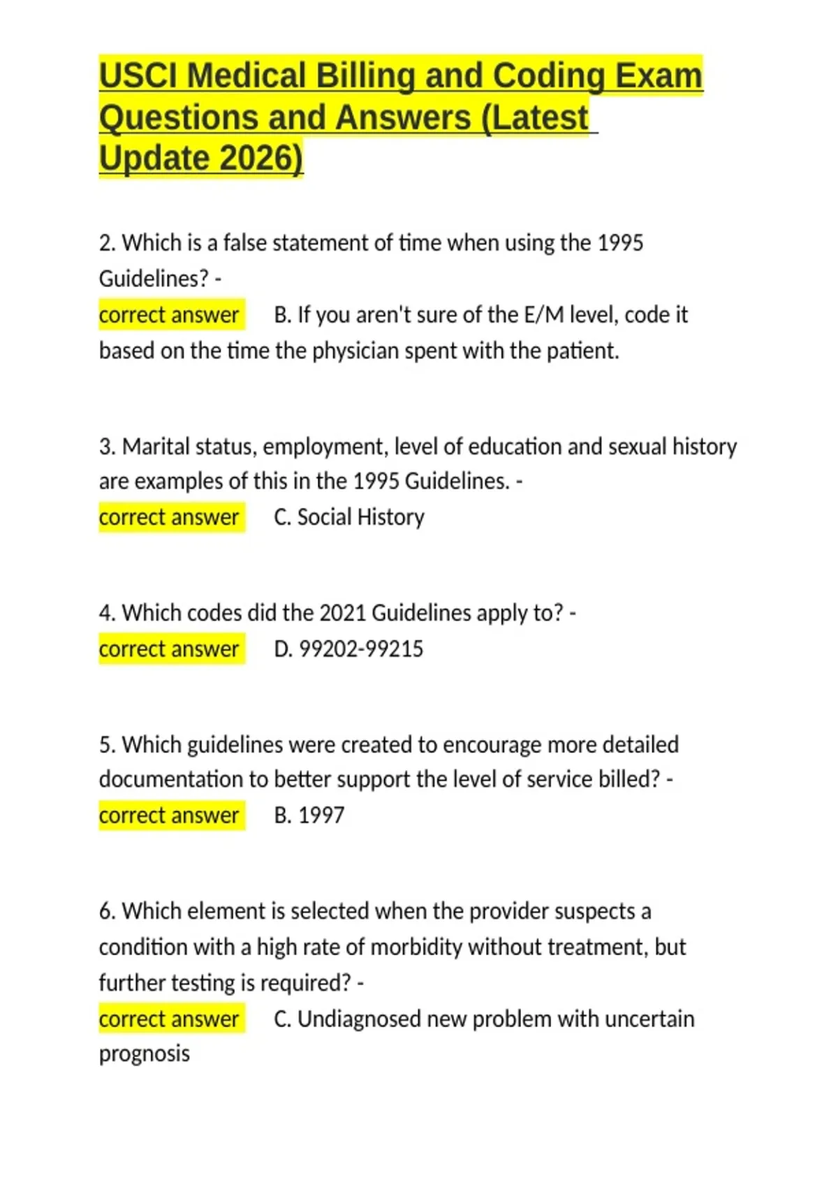 , USCI Medical Billing and Coding Exam