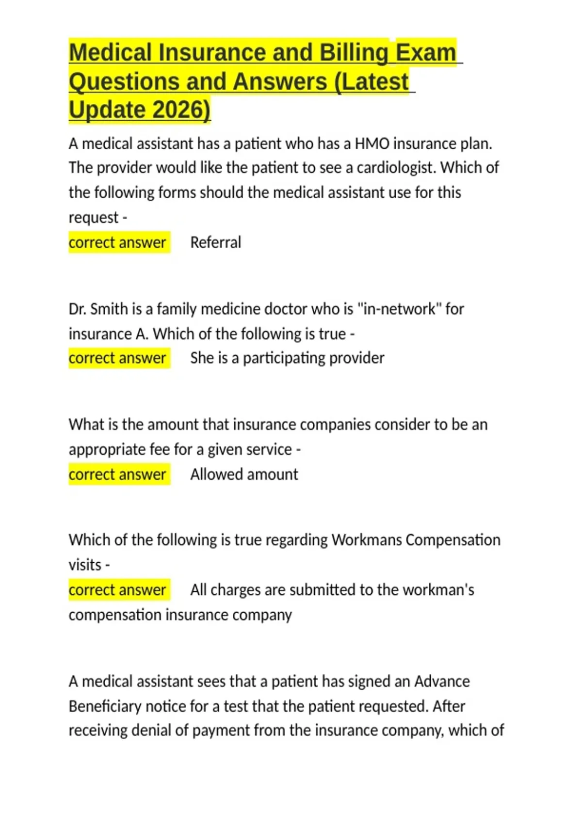 Medical Insurance and Billing Exam Questions and Answers (Latest Update 2026).docx