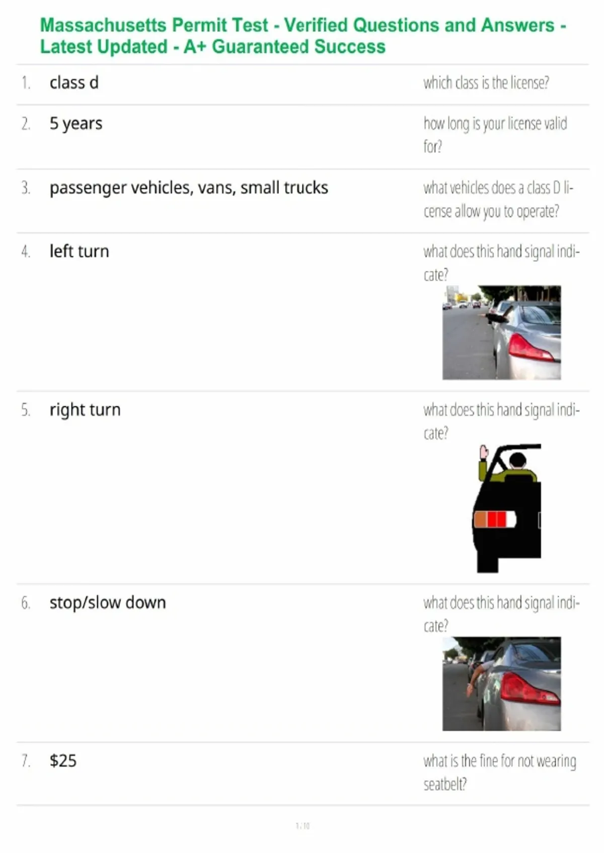 This Massachusetts Permit Test study guide is a comprehensive exam-prep resource designed to help learners confidently pass their driver’s permit exam on the first attempt. Featuring carefully verified questions and answers aligned with current Massachusetts Registry of Motor Vehicles standards, this guide covers essential topics such as road signs, traffic laws, safe driving practices, and defensive driving techniques. Clear, easy-to-understand explanations simplify complex rules and boost retention. Whether you are a first-time test taker or reviewing for a retake, this premium study guide delivers accuracy, confidence, and guaranteed success.