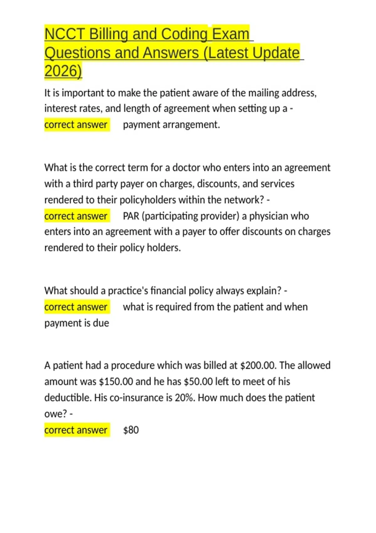 NCCT Billing and Coding Exam Questions and Answers (Latest Update 2026).docx