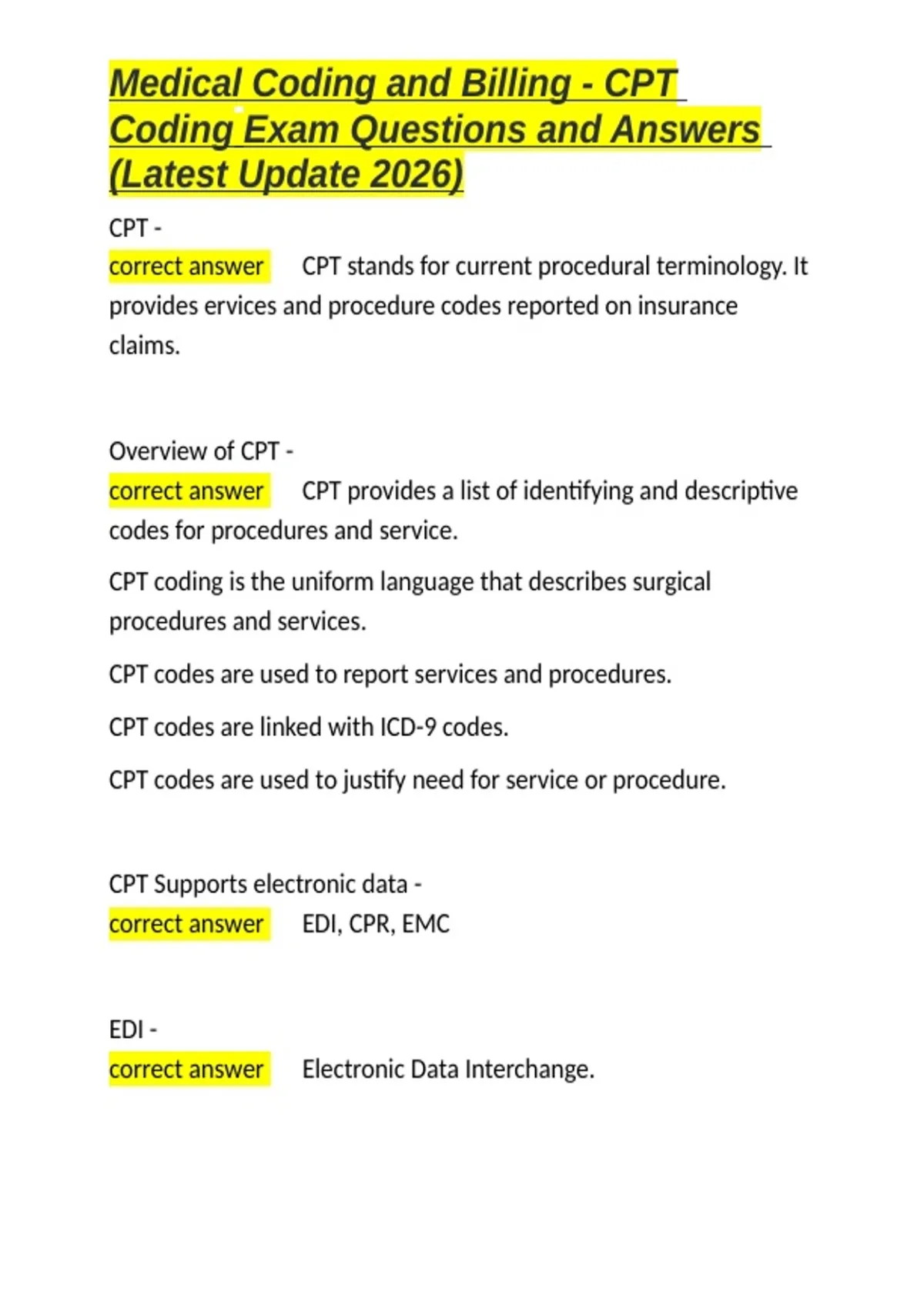 correct answer ✅CPT stands for current procedural terminology. It