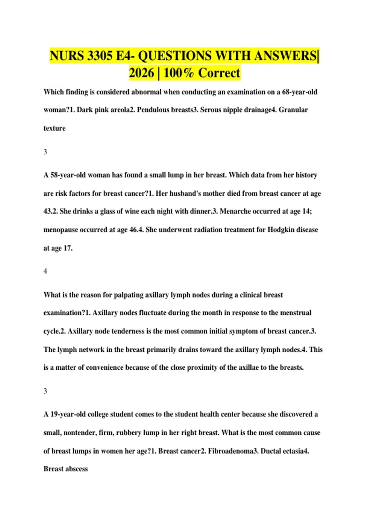 NURS 3305 E4- QUESTIONS WITH ANSWERS| 2026 | 100% Correct
