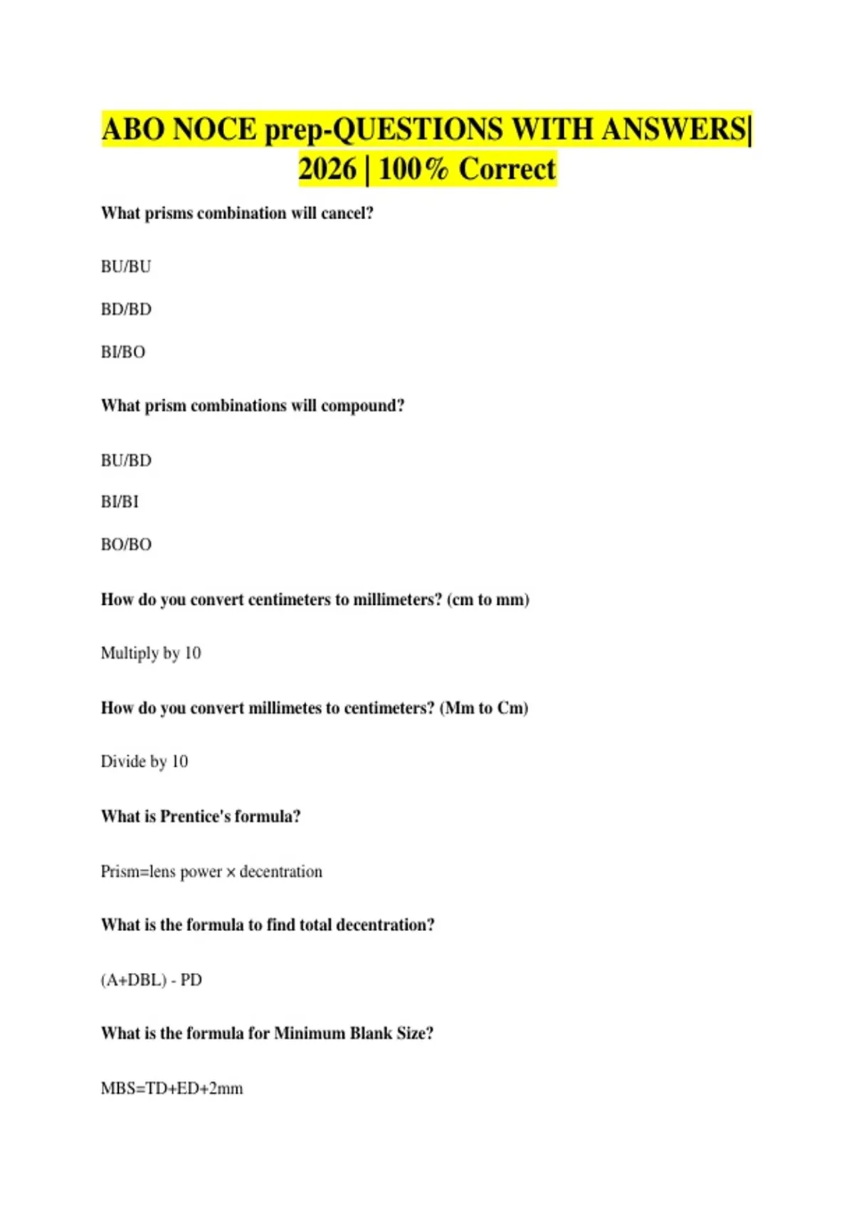 ABO NOCE prep-QUESTIONS WITH ANSWERS| 2026 | 100% Correct