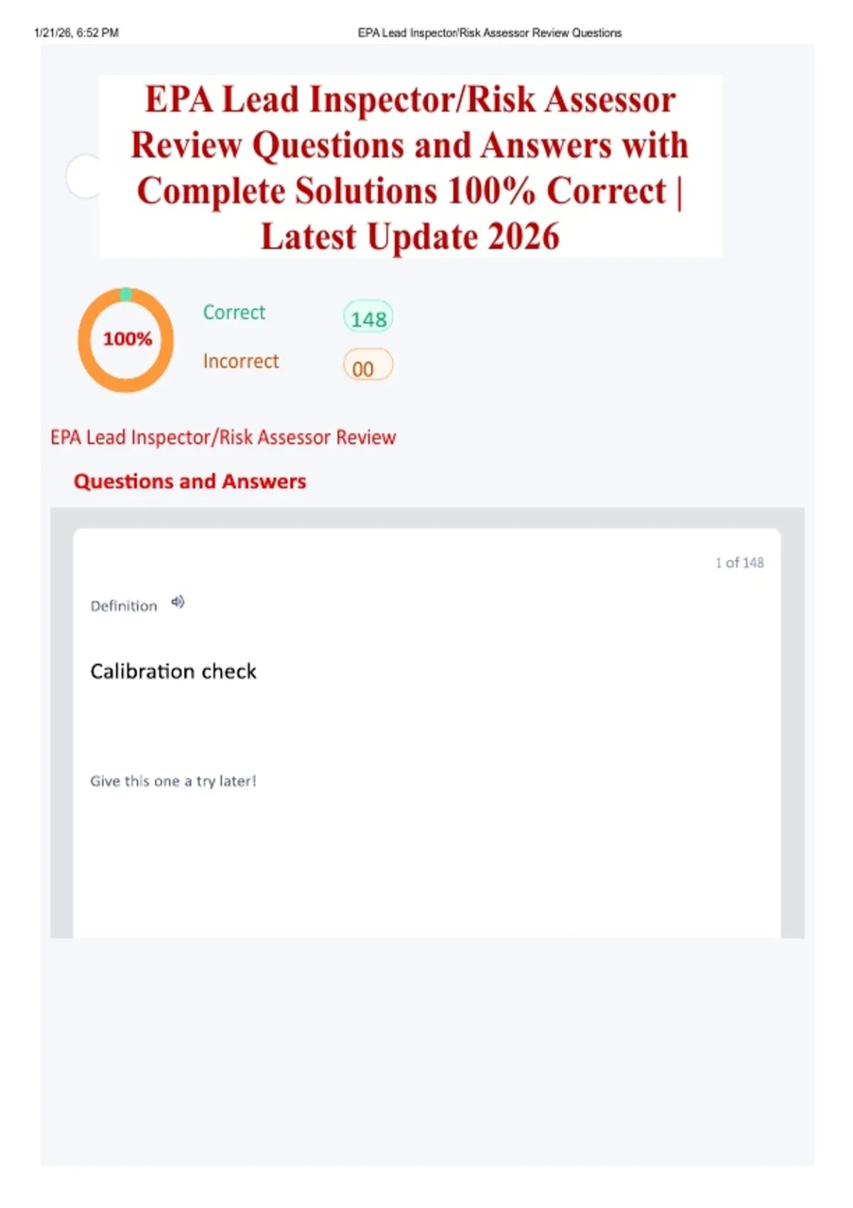 ,1/21/26, 6:52 PM EPA Lead Inspector/Risk Assessor Review Questions