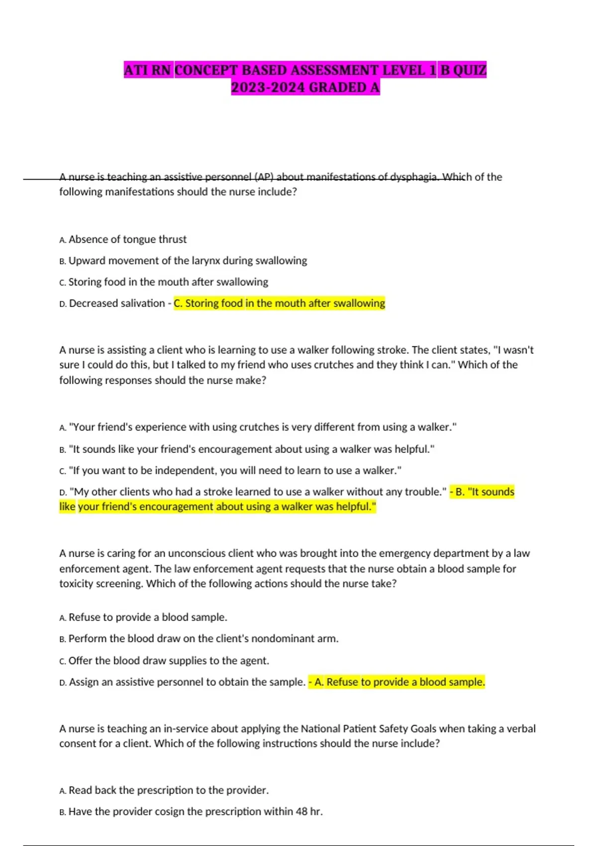 Prepare for ATI RN Concept-Based Assessment Level 1 B Quiz with this guide with solution, featuring Graded A questions and answers designed to reinforce nursing concepts, improve clinical reasoning, and boost exam performance.