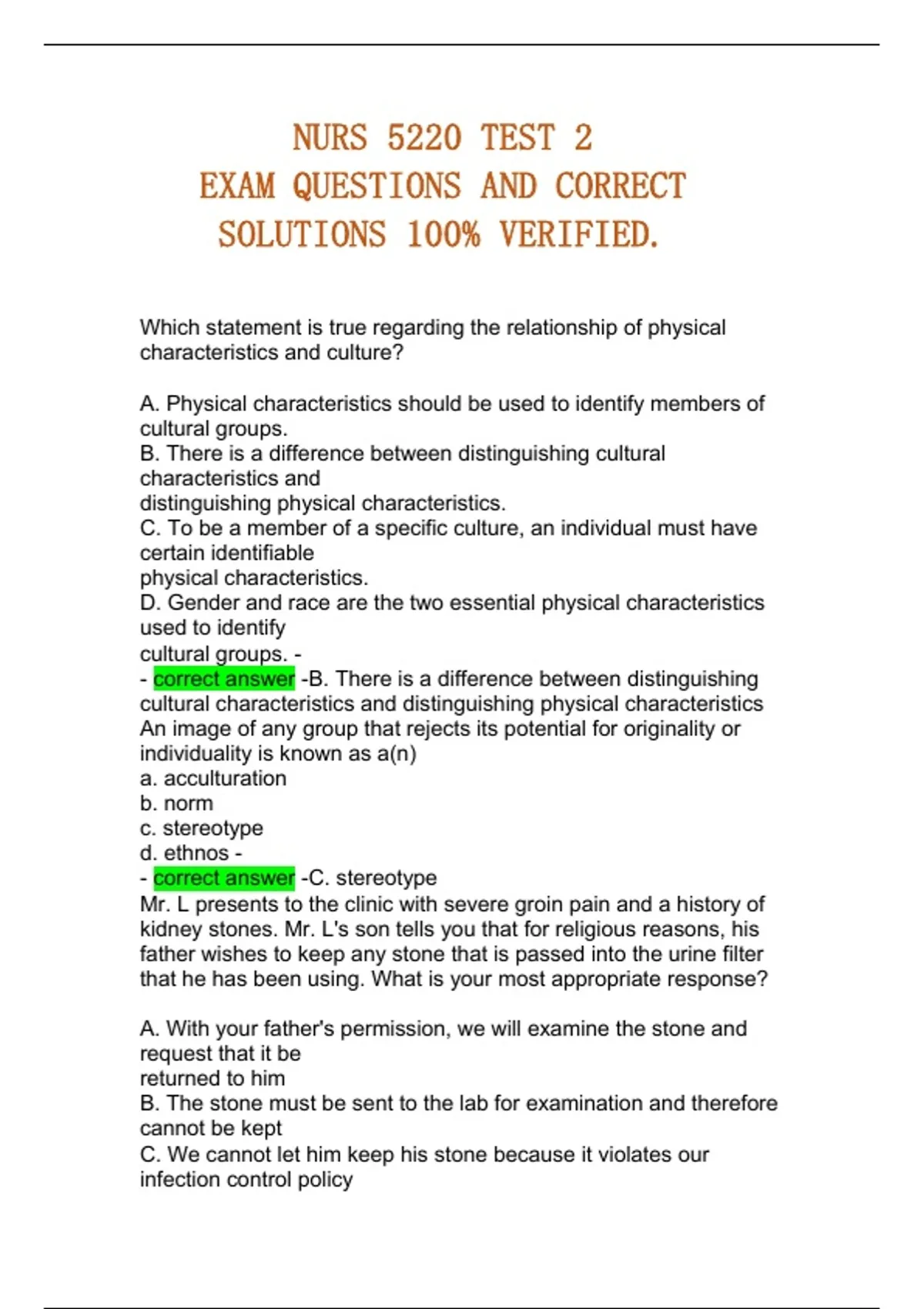 NURS 5220 TEST 2 EXAM QUESTIONS AND CORRECT SOLUTIONS 100% VERIFIED.