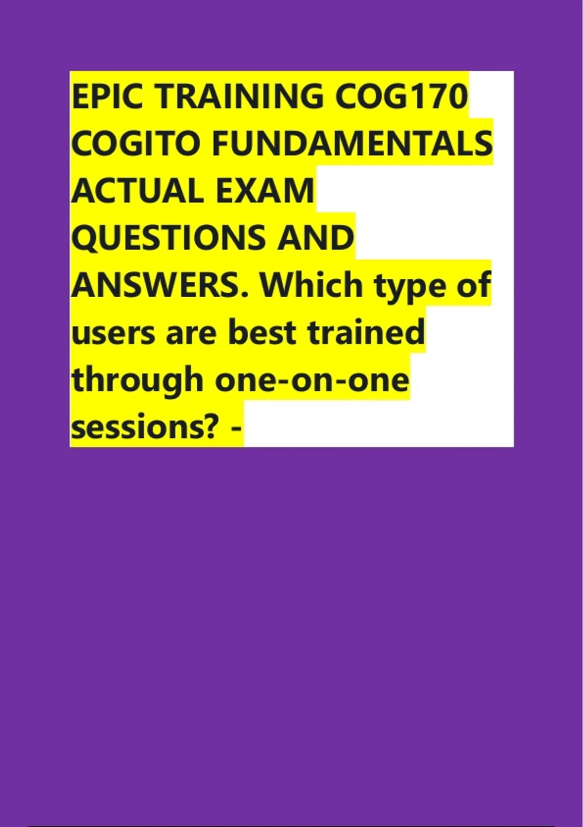 EPIC TRAINING COG170 COGITO FUNDAMENTALS ACTUAL EXAM QUESTIONS AND ANSWERS. Which type of users are best trained through one‐on‐one sessions? -