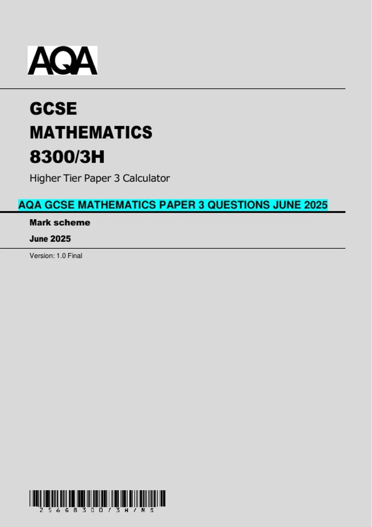 AQA GCSE MATHEMATICS PAPER 3 QUESTIONS JUNE 2025