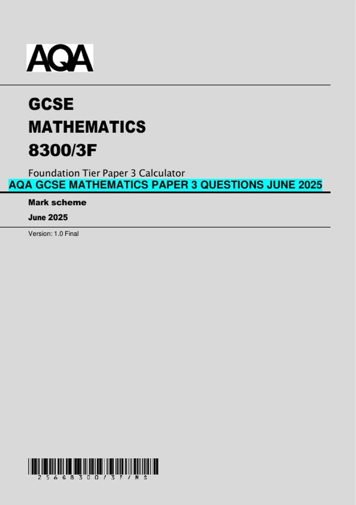 AQA GCSE MATHEMATICS PAPER 3 QUESTIONS JUNE 2025