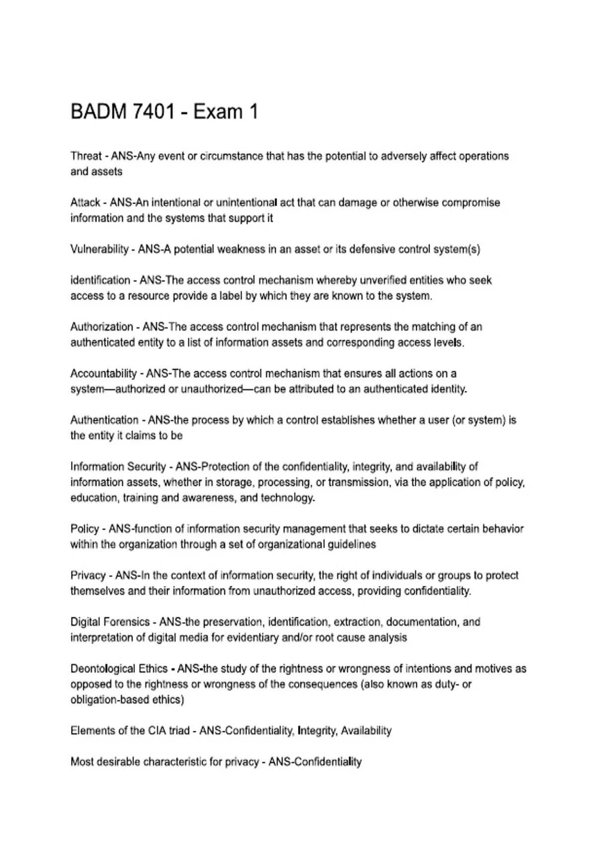 BADM 7401 Cybersecurity Exam 1 Questions & Answers Study Guide 2025/2026