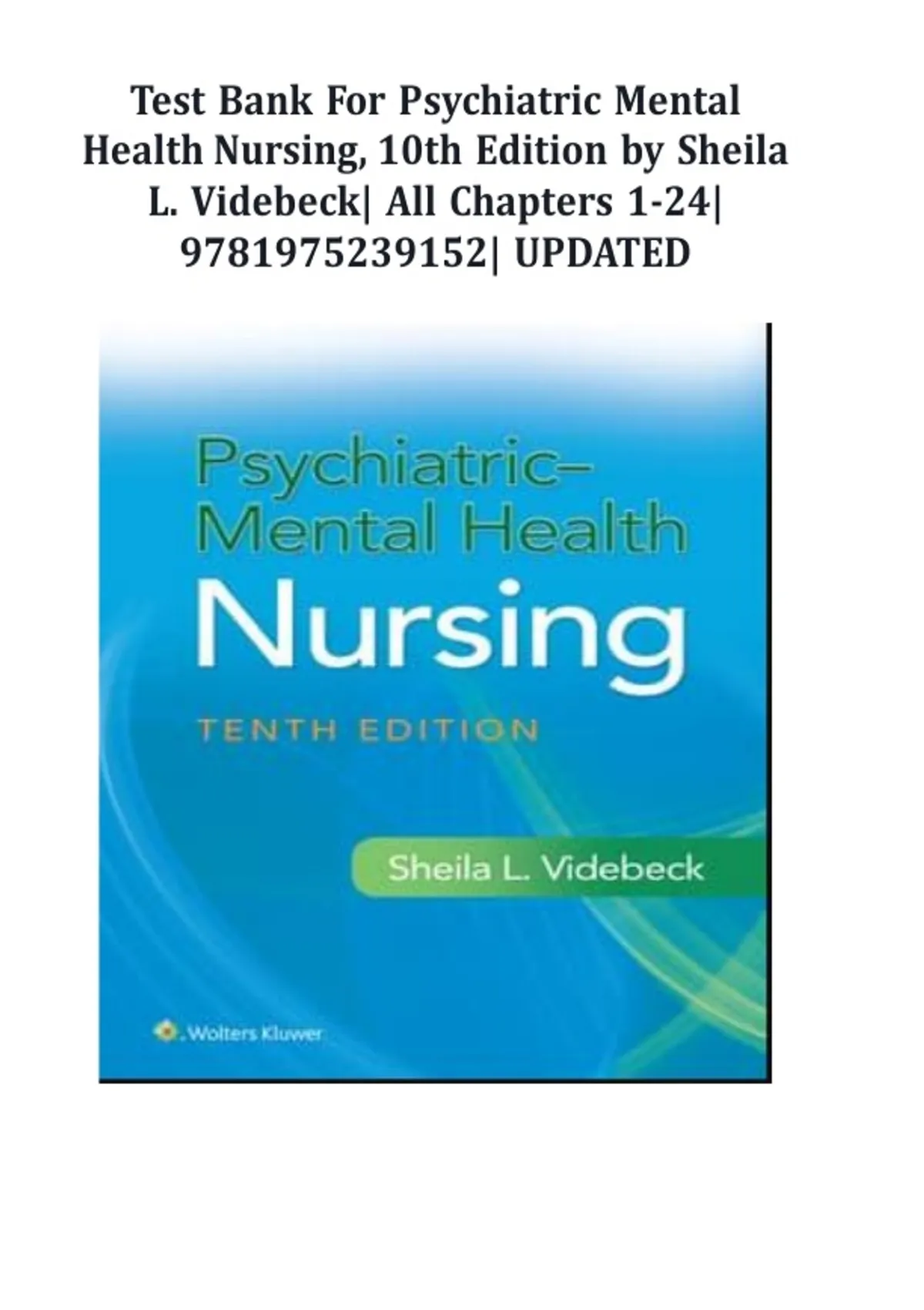 TEST BANK FOR PSYCHIATRIC MENTAL HEALTH NURSING 10TH EDITION BY VIDEBECK