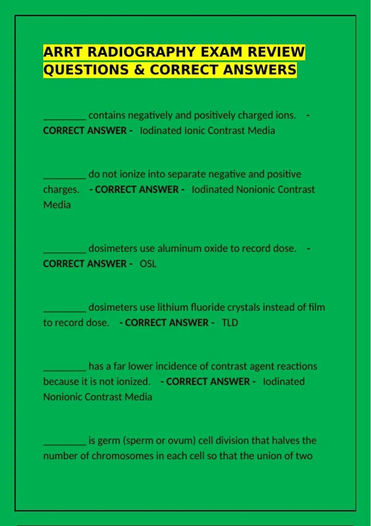 ARRT Radiography Exam Review – Questions & Correct Answers Guide