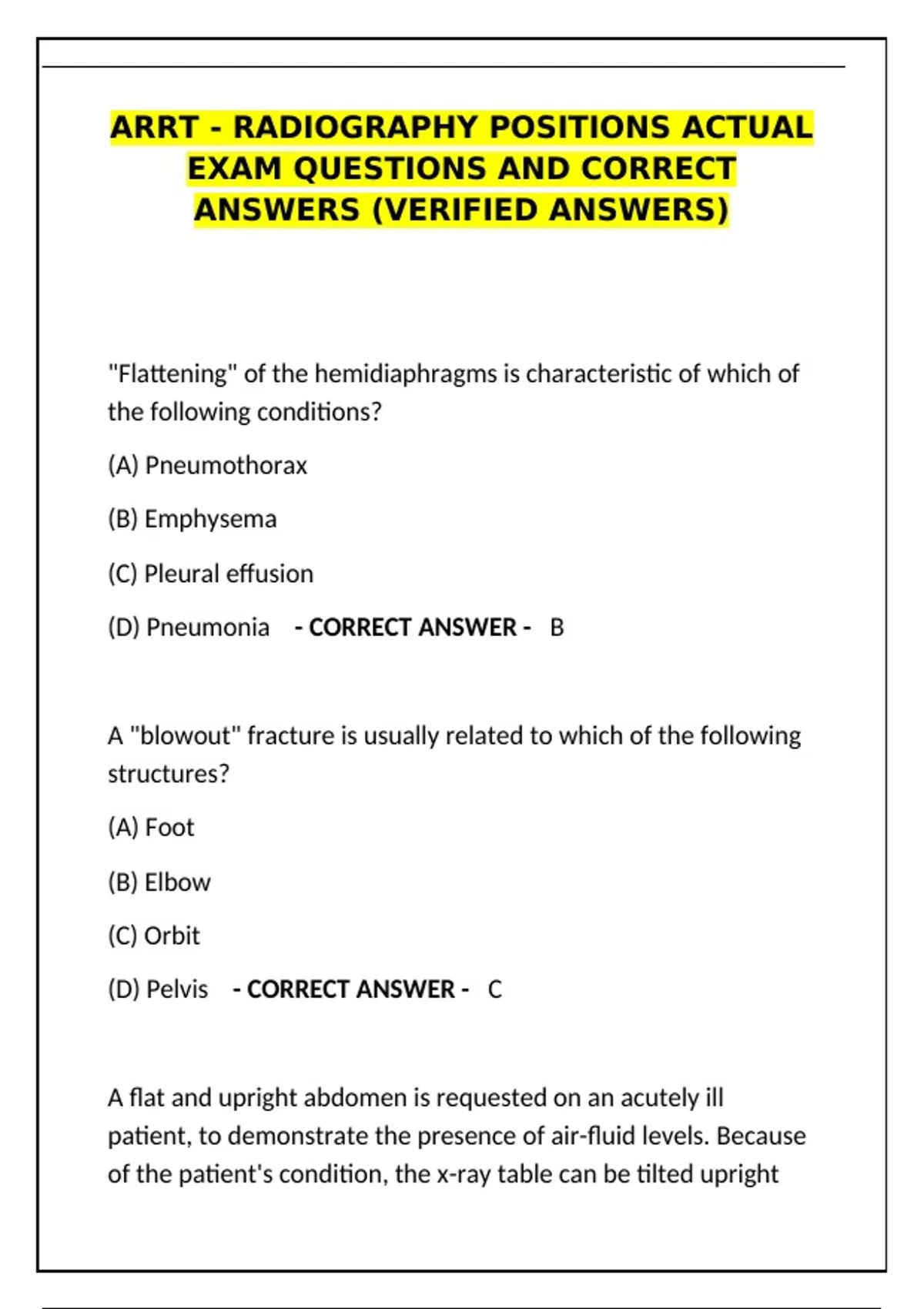 (D) Pneumonia - CORRECT ANSWER - B