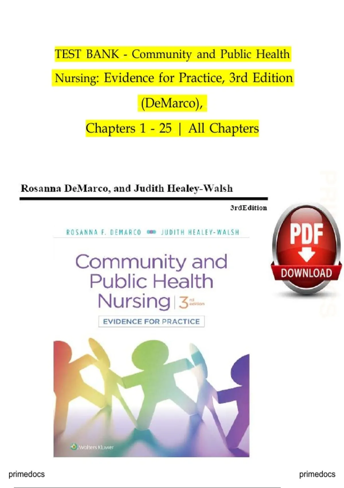 Test bank with complete answer guide – Community and public health nursing: Evidence for practice (3rd edition) By DeMarco | Chapters 1–25 covered | All chapters included | Rated A+ | Latest edition