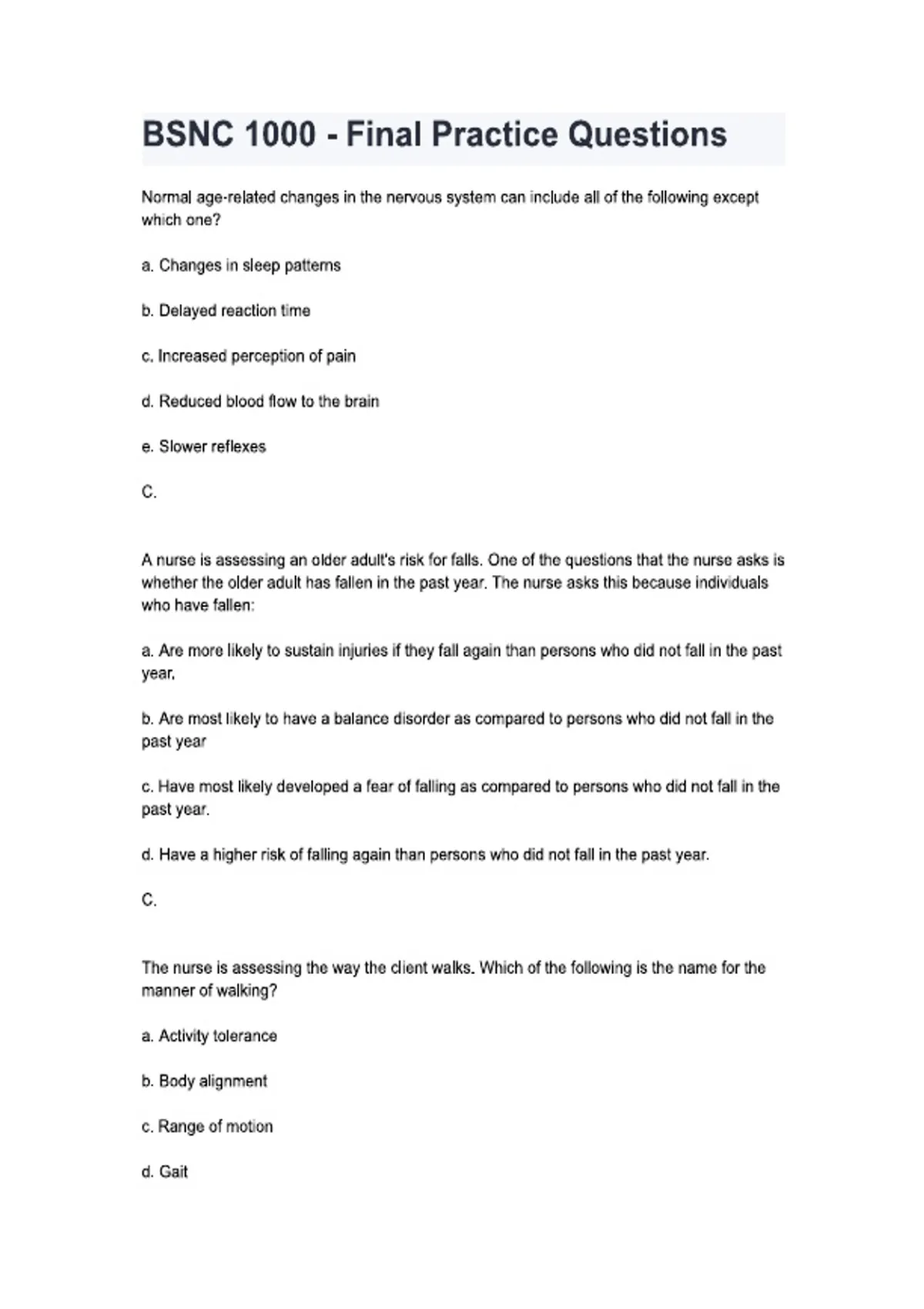 BSNC 1000 Final Exam, designed to help undergraduate students review and master essential business fundamentals. It covers all major topics commonly tested in the final exam, including: Introduction to business and management principles Organizational structures and business environments Decision-making and problem-solving in business Business ethics and social responsibility Fundamentals of marketing, finance, and operations Leadership and communication concepts