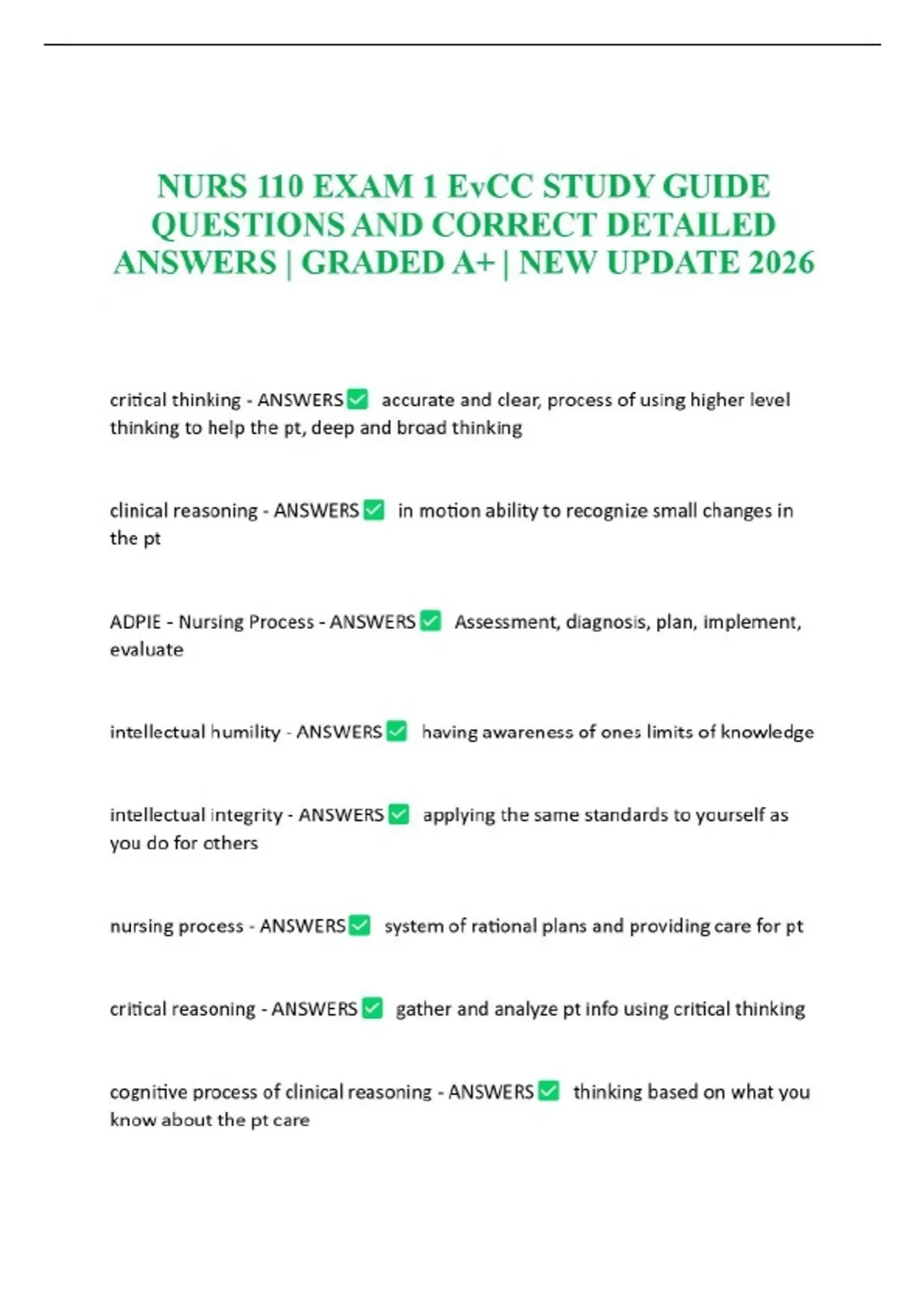 NURS 110 EXAM 1 EvCC STUDY GUIDE QUESTIONS AND CORRECT DETAILED ANSWERS | GRADED A+ | NEW UPDATE 2026