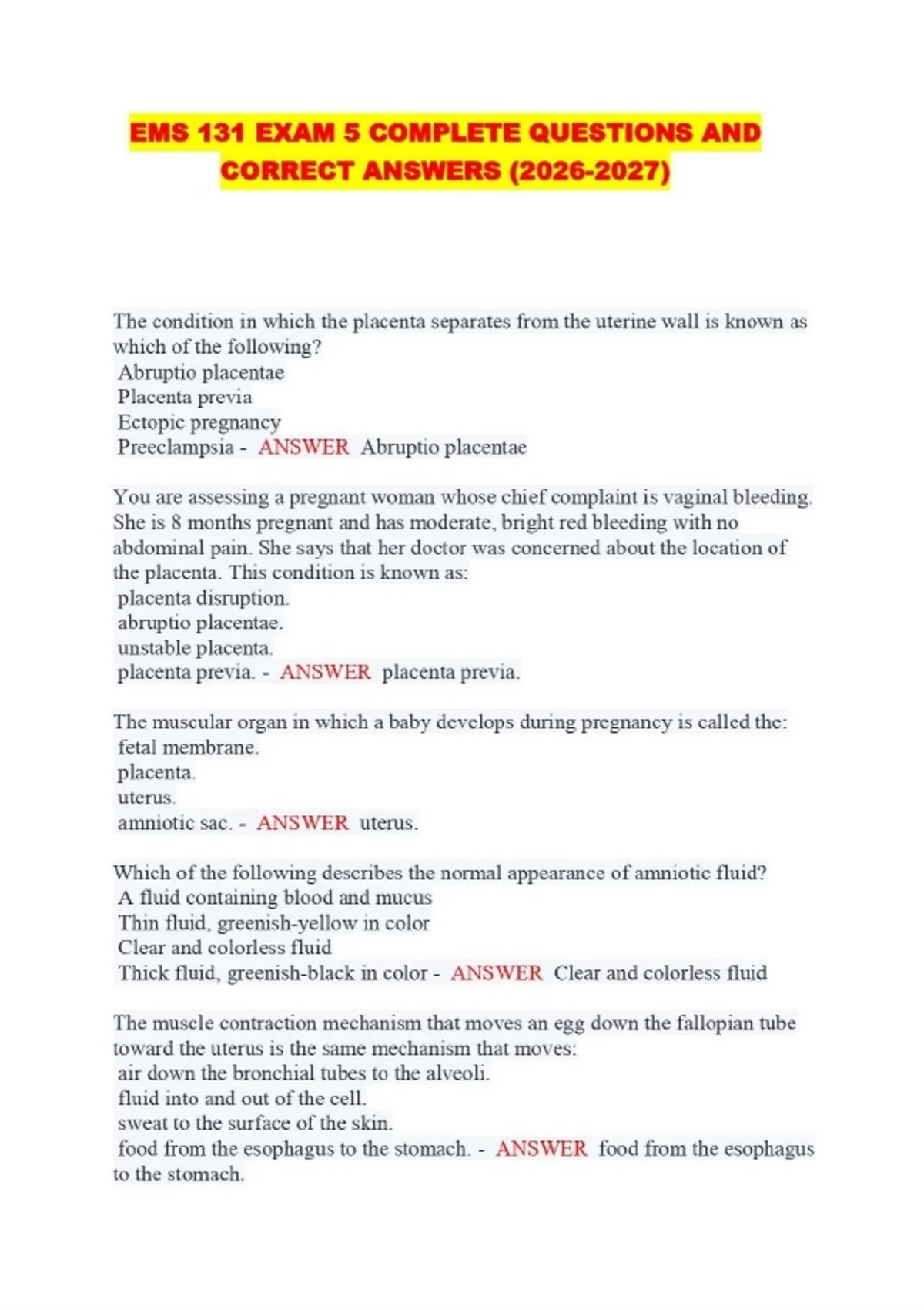 EMS 131 EXAM 5 COMPLETE QUESTIONS AND CORRECT ANSWERS ()...