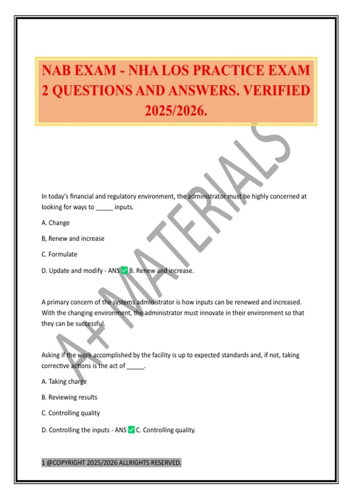 NAB EXAM - NHA LOS PRACTICE EXAM 2 QUESTIONS AND ANSWERS. VERIFIED 2025/2026.