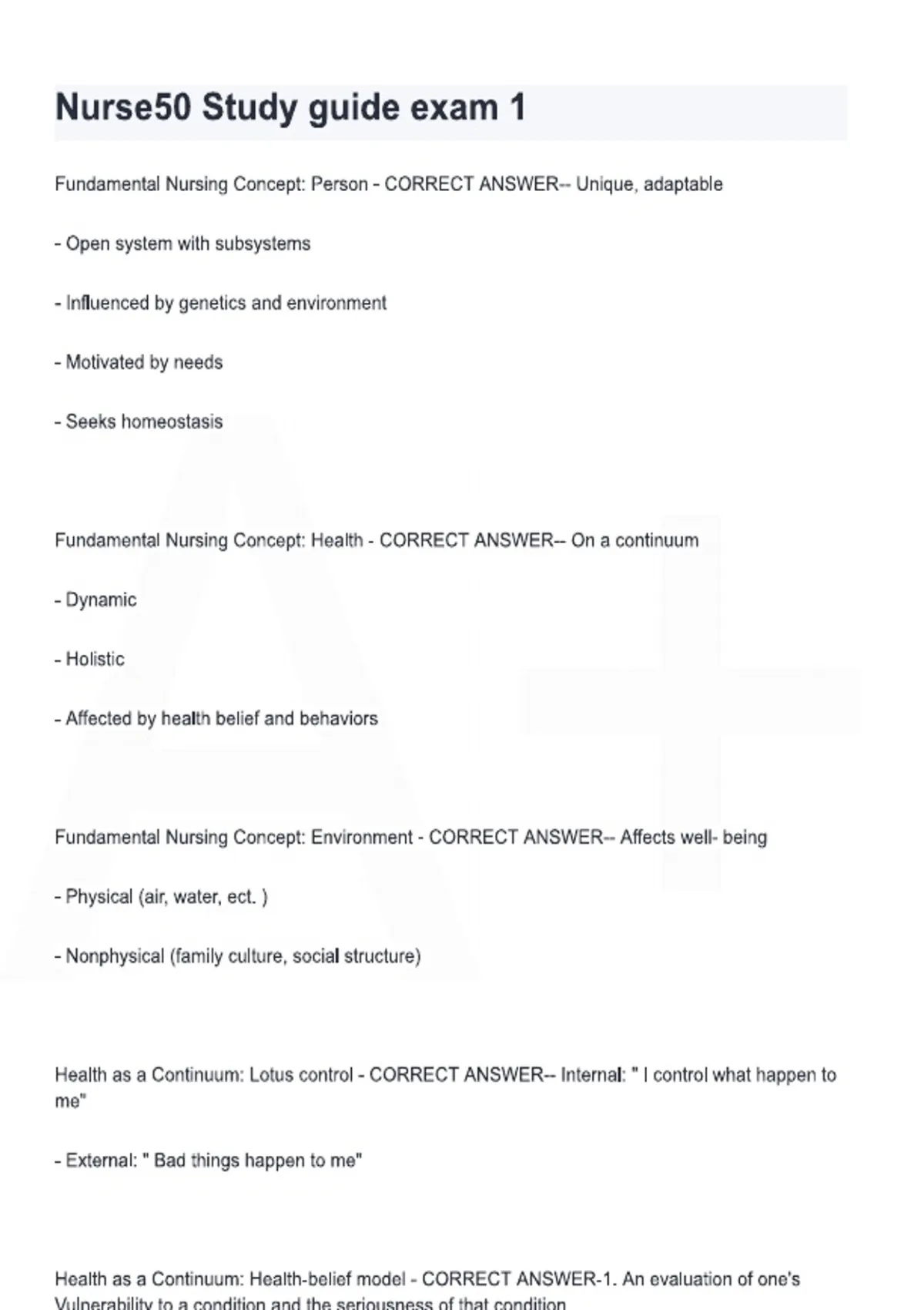 NURSE 50 Exam 1, designed to help nursing students review foundational nursing concepts and prepare confidently for their first exam. It includes exam-focused questions and clear answers aligned with common NURSE 50 course objectives