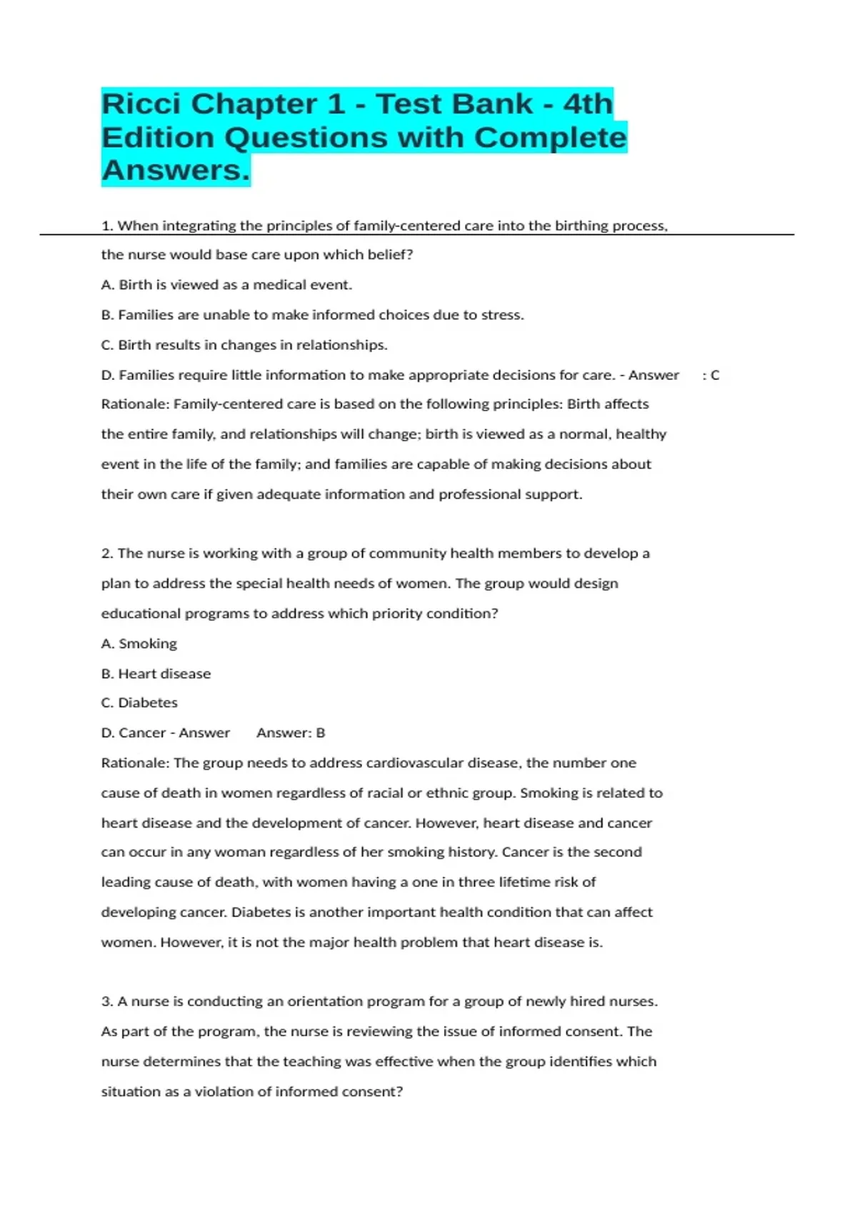 Rationale: The nurse's responsibilities related to informed consent include: Ensuring