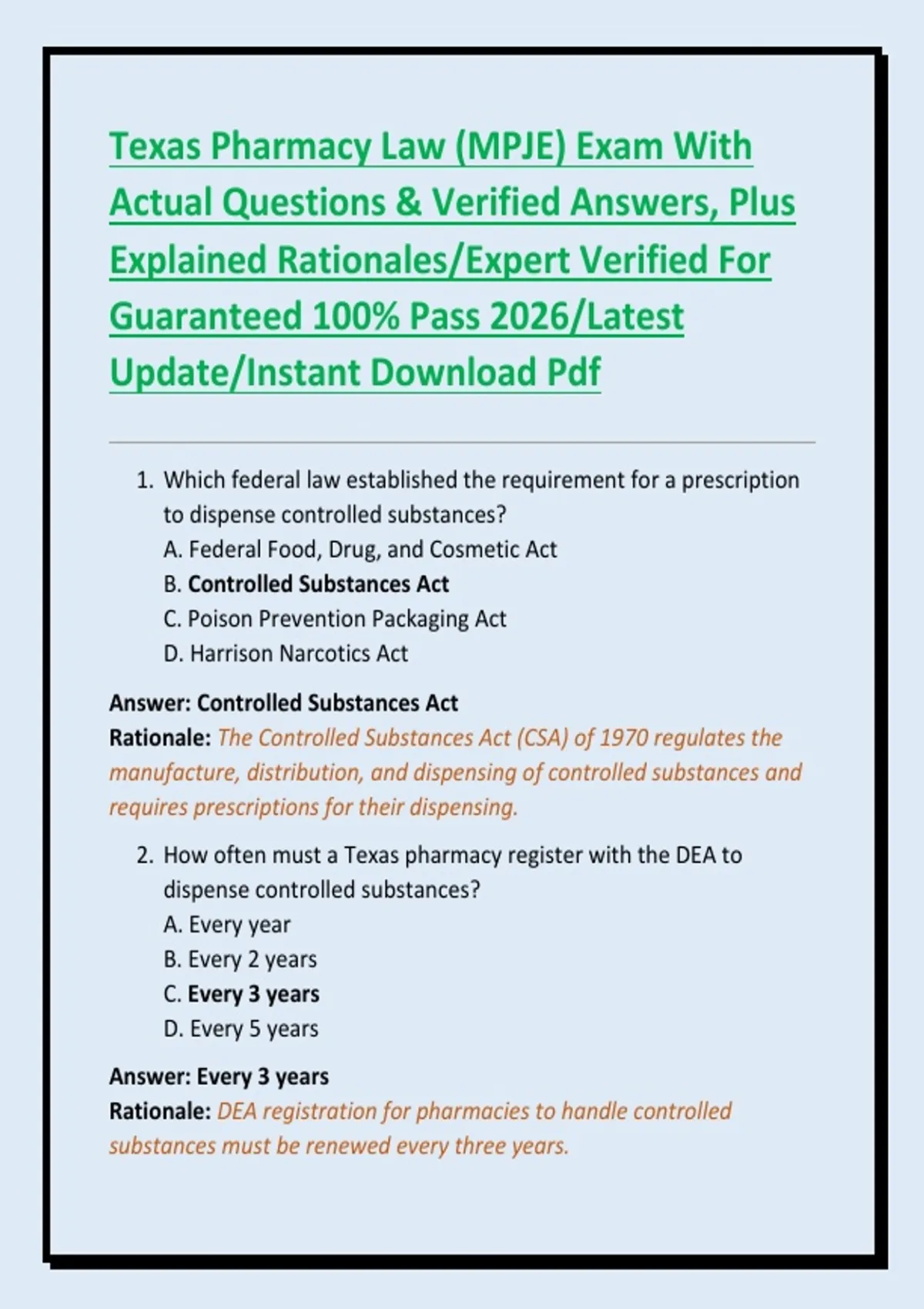 Rationale: The Controlled Substances Act (CSA) of 1970 regulates the