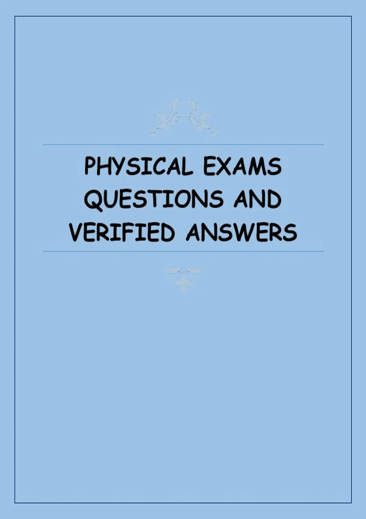 This document contains verified questions and accurate answers related to physical examinations. It covers essential topics such as patient assessment, vital signs, inspection, palpation, percussion, auscultation, and common clinical findings, making it a useful study resource for health and medical exam preparation.