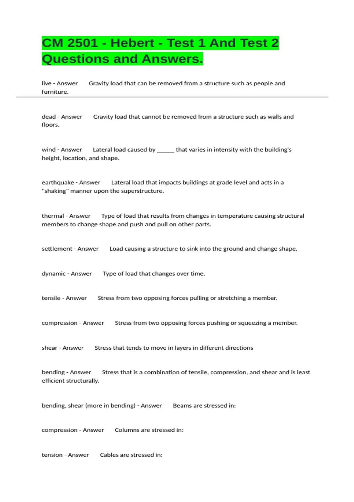 CM 2501 - Hebert - Test 1 And Test 2 Questions and Answers.