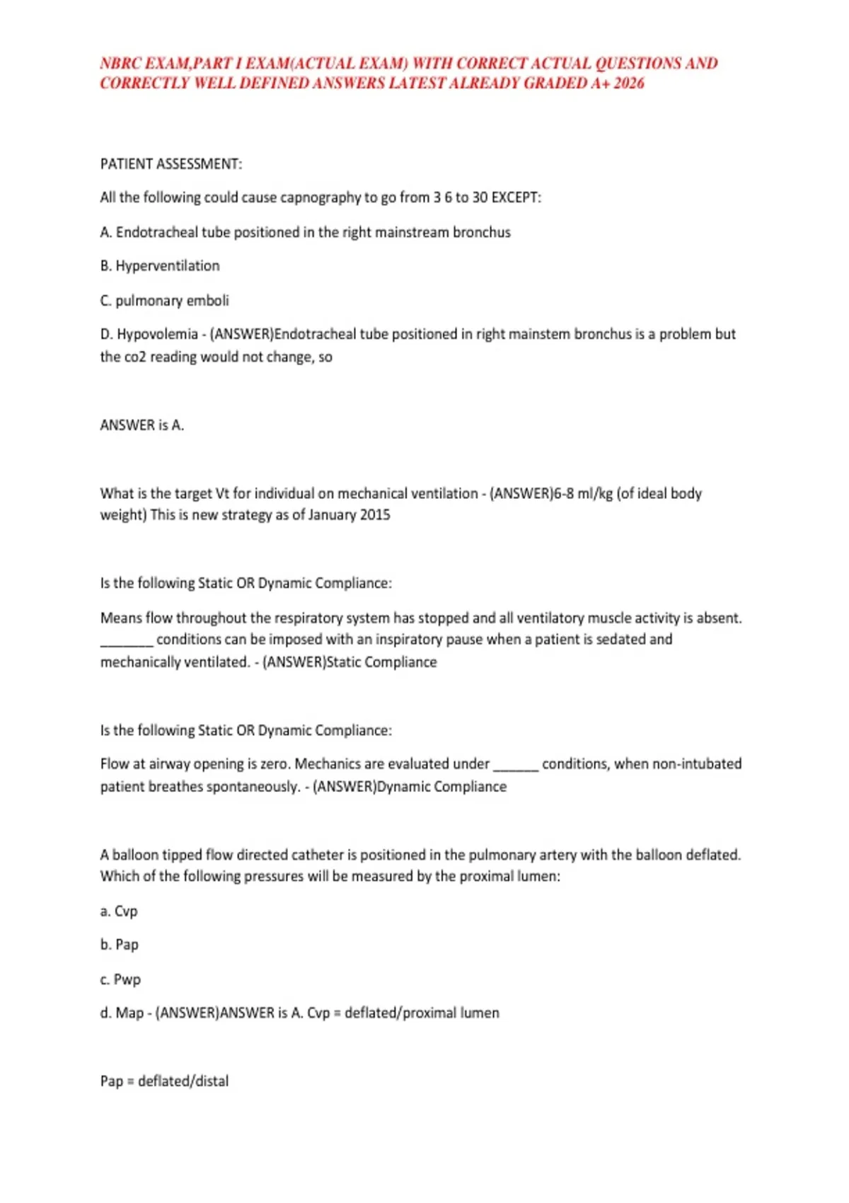 NBRC EXAM,PART I EXAM(ACTUAL EXAM) WITH CORRECT ACTUAL QUESTIONS AND CORRECTLY WELL DEFINED ANSWERS LATEST ALREADY GRADED A+ 2026