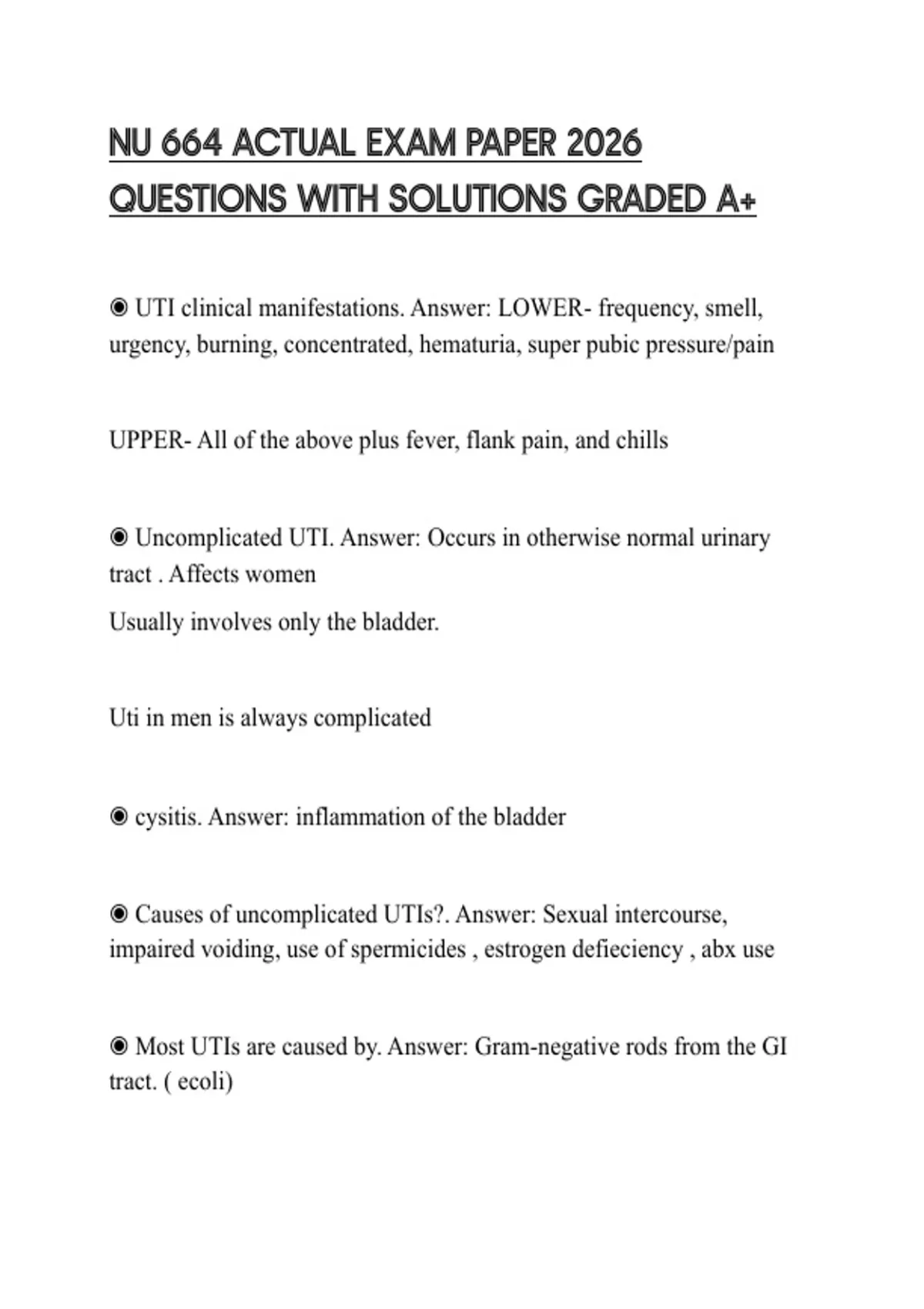 ◉ Uncomplicated UTI. Answer: Occurs in otherwise normal urinary