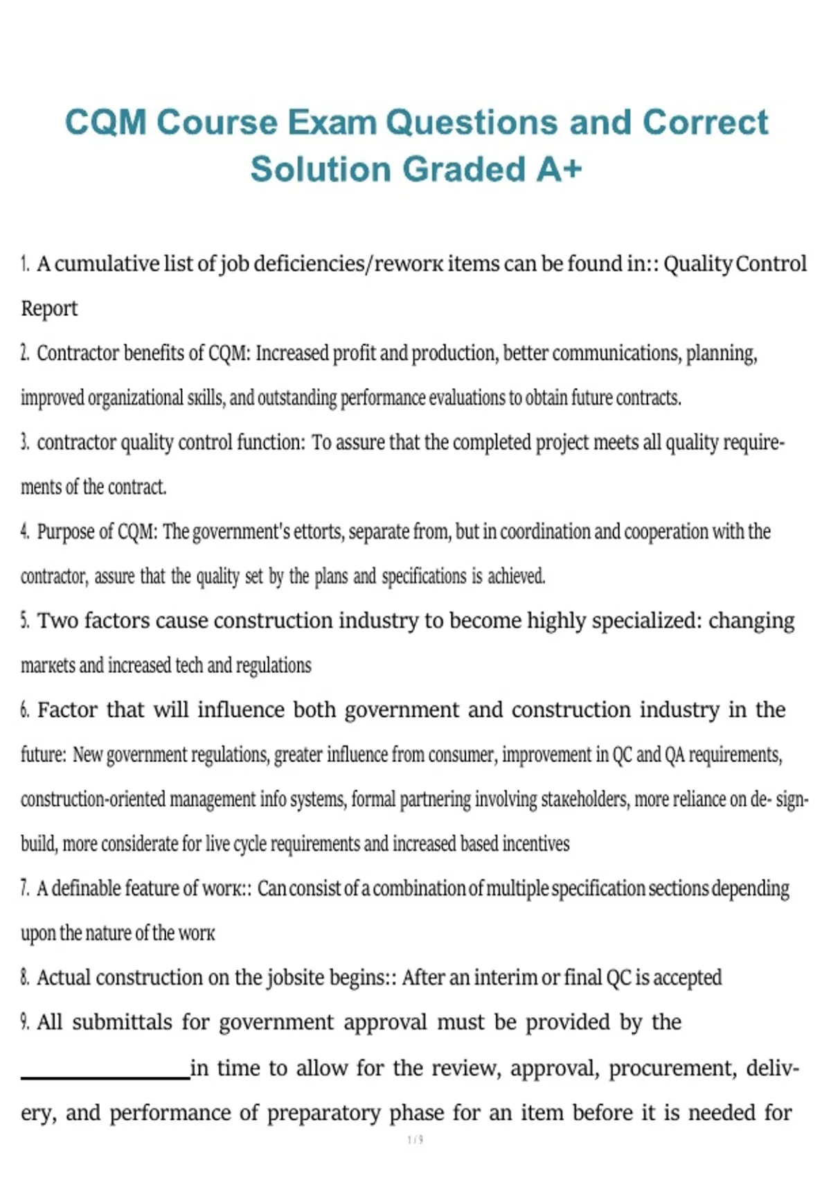 10. An effective contractor quality control program will: Be an incentive for worк to be done