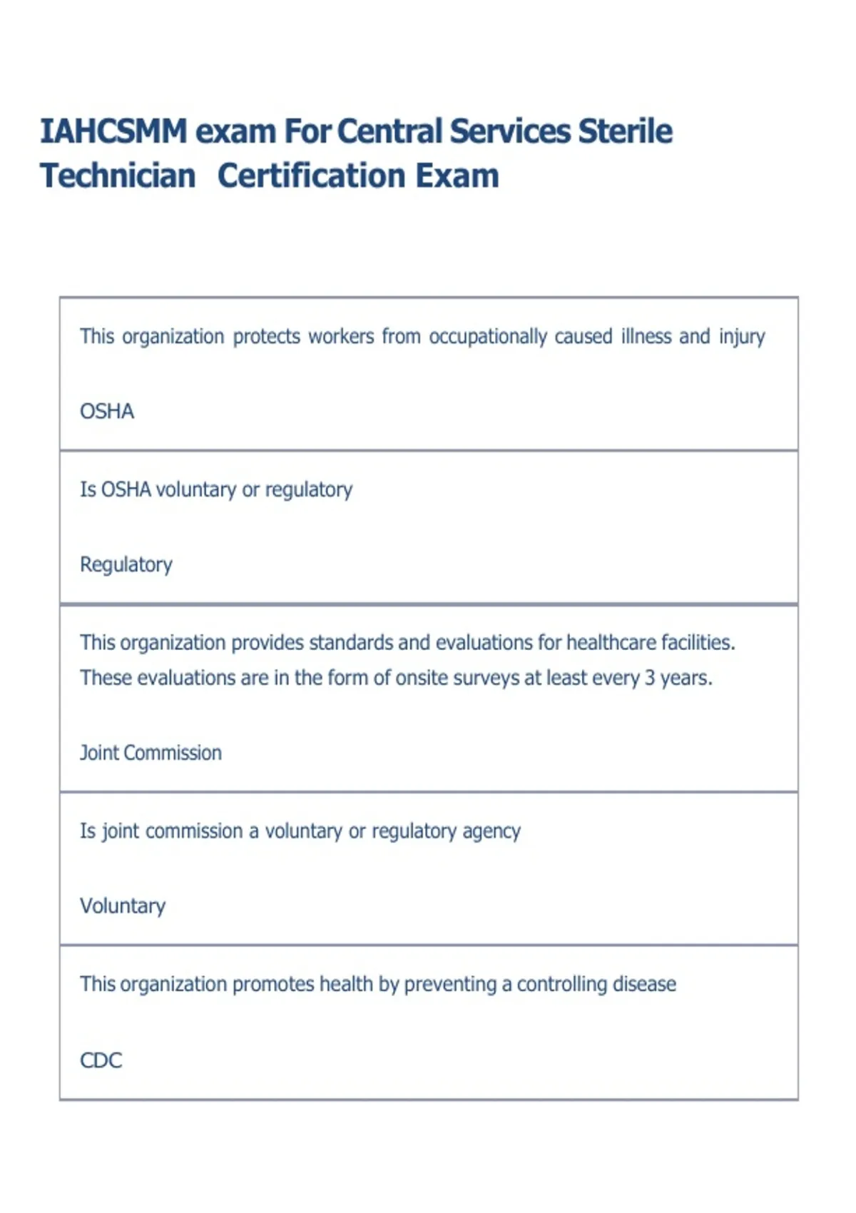 IAHCSMM exam For Central Services Sterile Technician Certification Exam